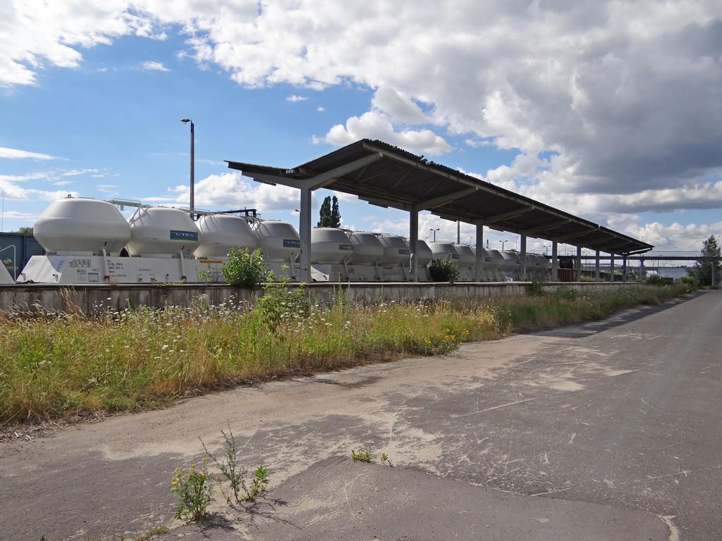 Bocznica przesypowni cementu i składu kruszyw. Dwa tory zdawczo-odbiorcze o długości użytkowej ok. 190 m i 260 m (trzeci nieprzejezdny), tor ładunkowy przy placu ładunkowym o długości ok. 160 m, tor ładunkowy o długości ok. 90 m, rampa czołowo-boczna o długości ok. 100 m z dwoma torami ładunkowymi o długości ok. 90 m każdy, dwa tory wyciągowe o długości ok. 110 m i 150 m, tor odstawczy o długości użytkowej ok. 70 m. Widok w kierunku Legionowa. 9,7 km/13,9 km.