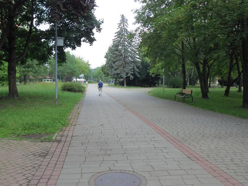 Park Generała Hallera - dawniej był to teren kopalni węgla "Reden". Deptak poprowadzono mniej więcej po śladzie toru kolejowego. Widok w kierunku północnym.