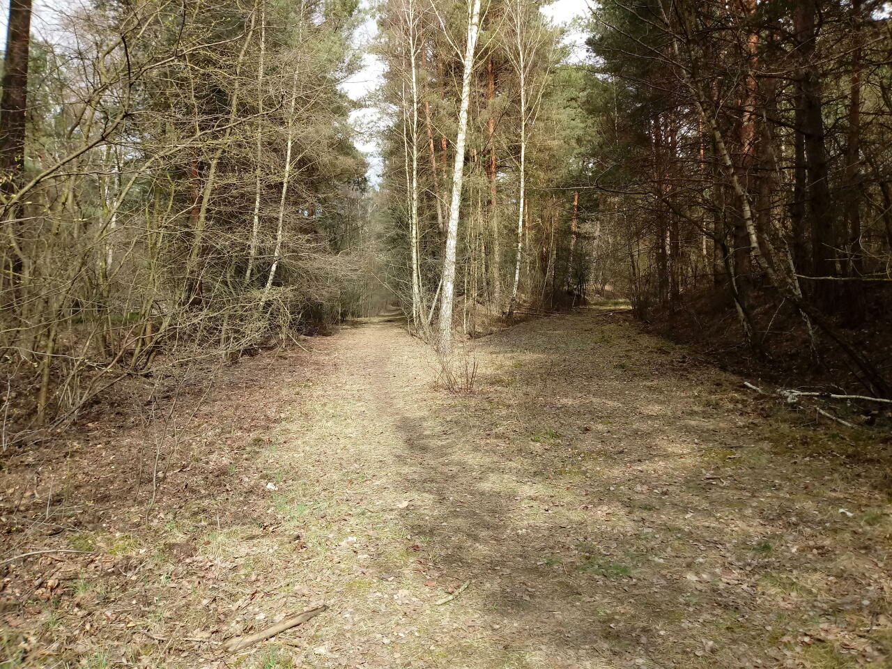 Starotorze bocznic prowadzących do rozdzielni gazu (na lewo) oraz do terenu, związanego obecnie (i/lub dawniej) z Okręgowym Urzędem Górniczym w Poznaniu (na prawo). Widok w kierunku północnym. Zasłyszana wiele lat temu nazwa prezentowanego lasu: Małpi Gaj (określenie dotyczące zapewne tego terenu).