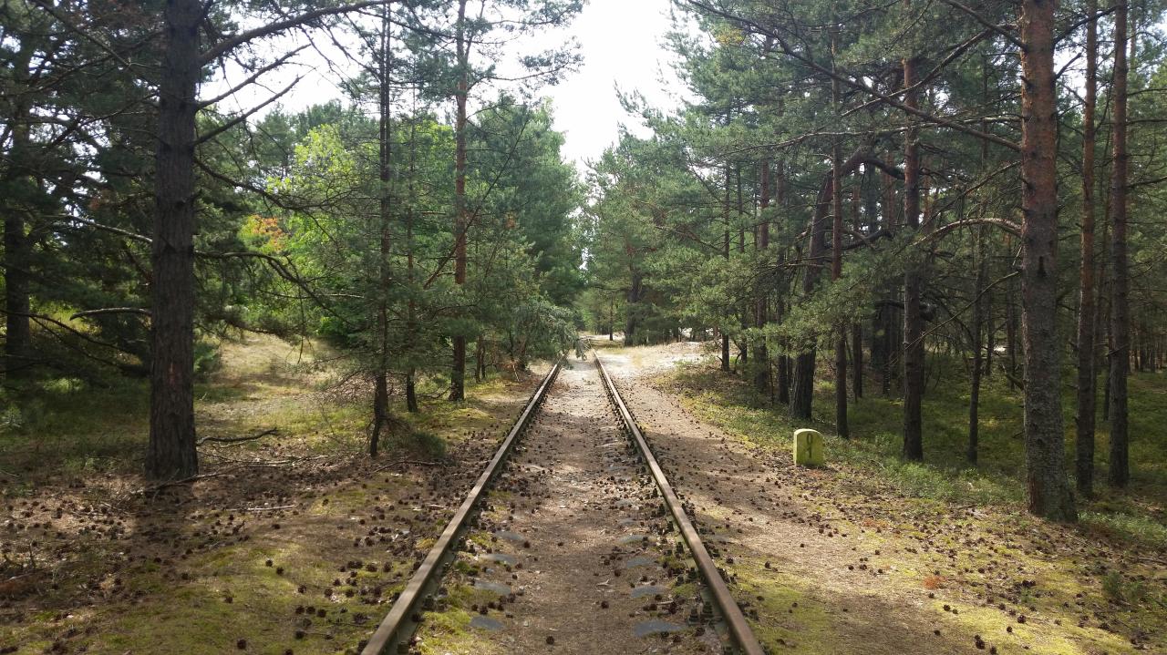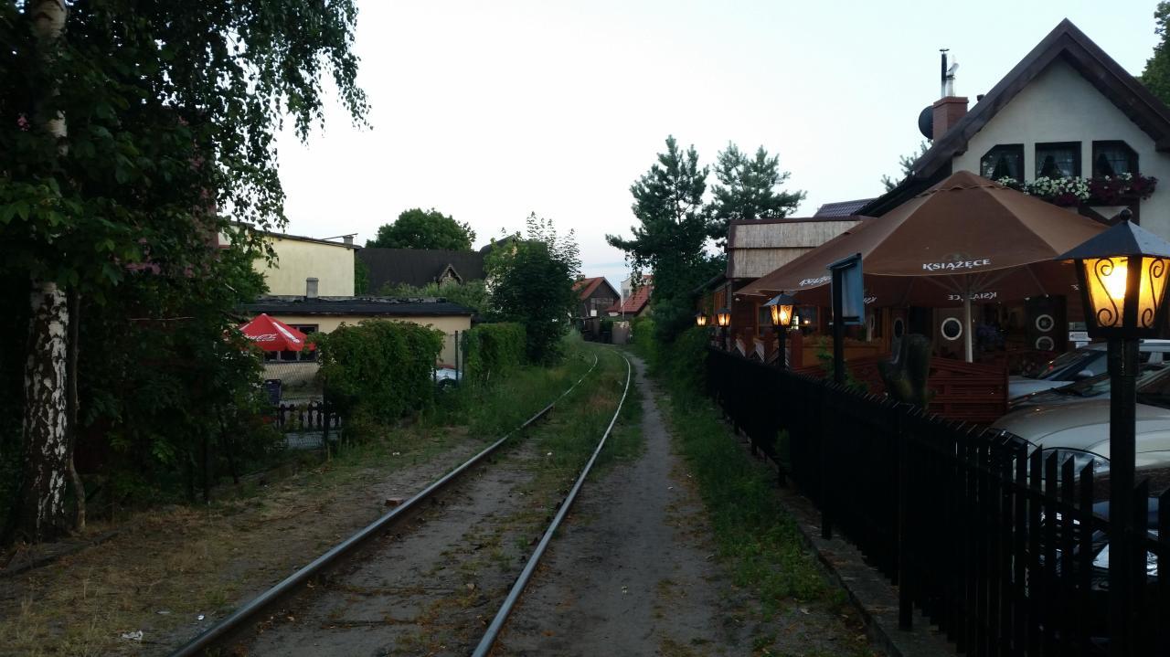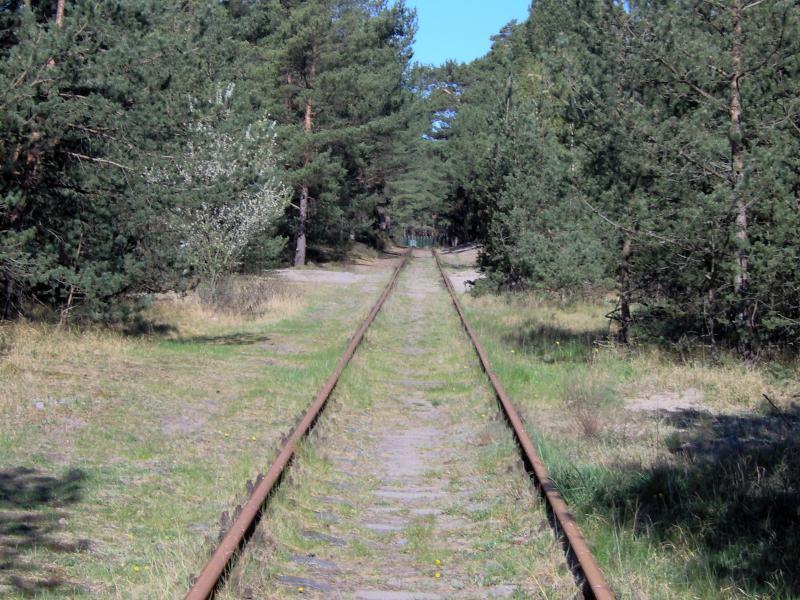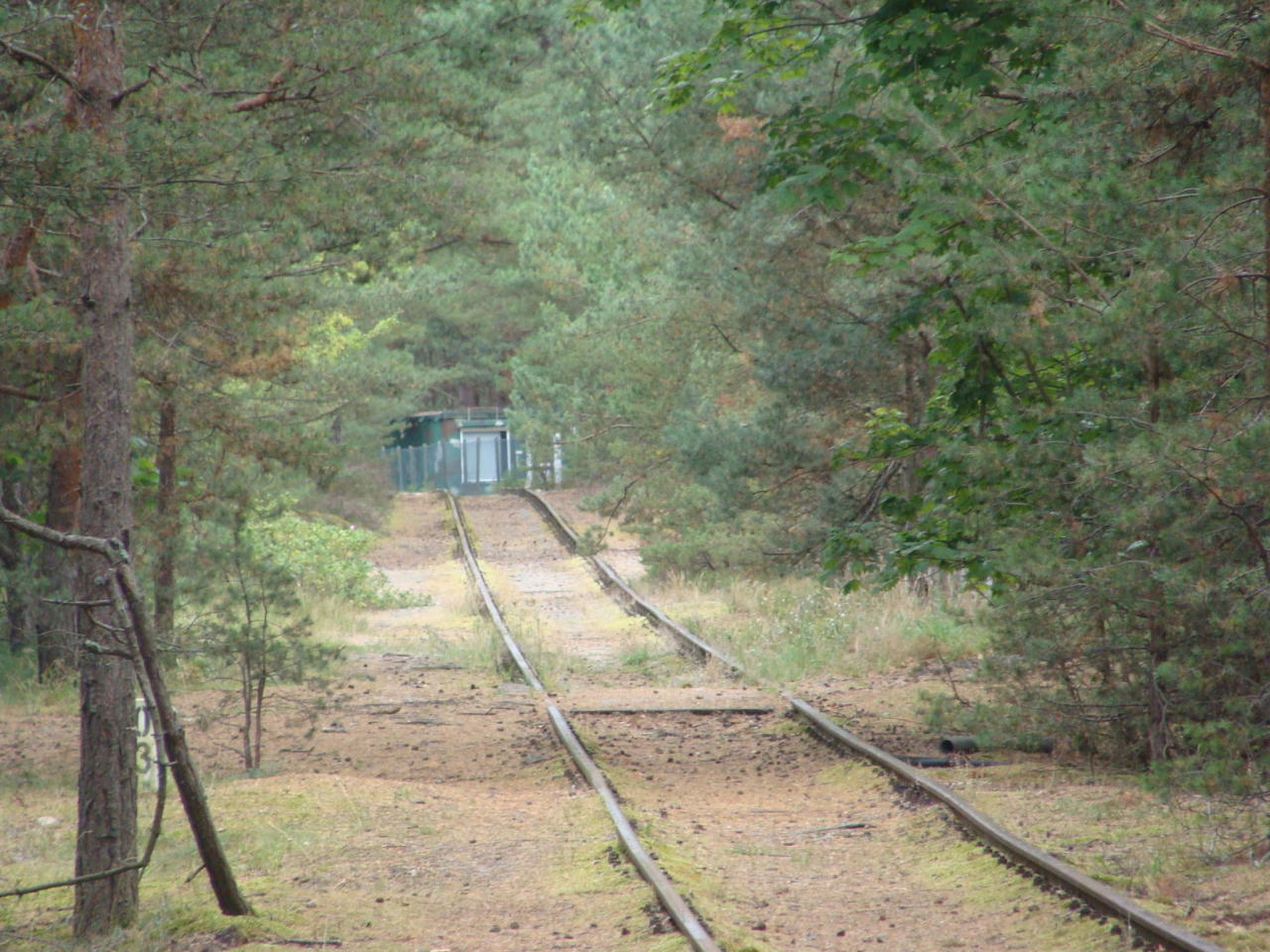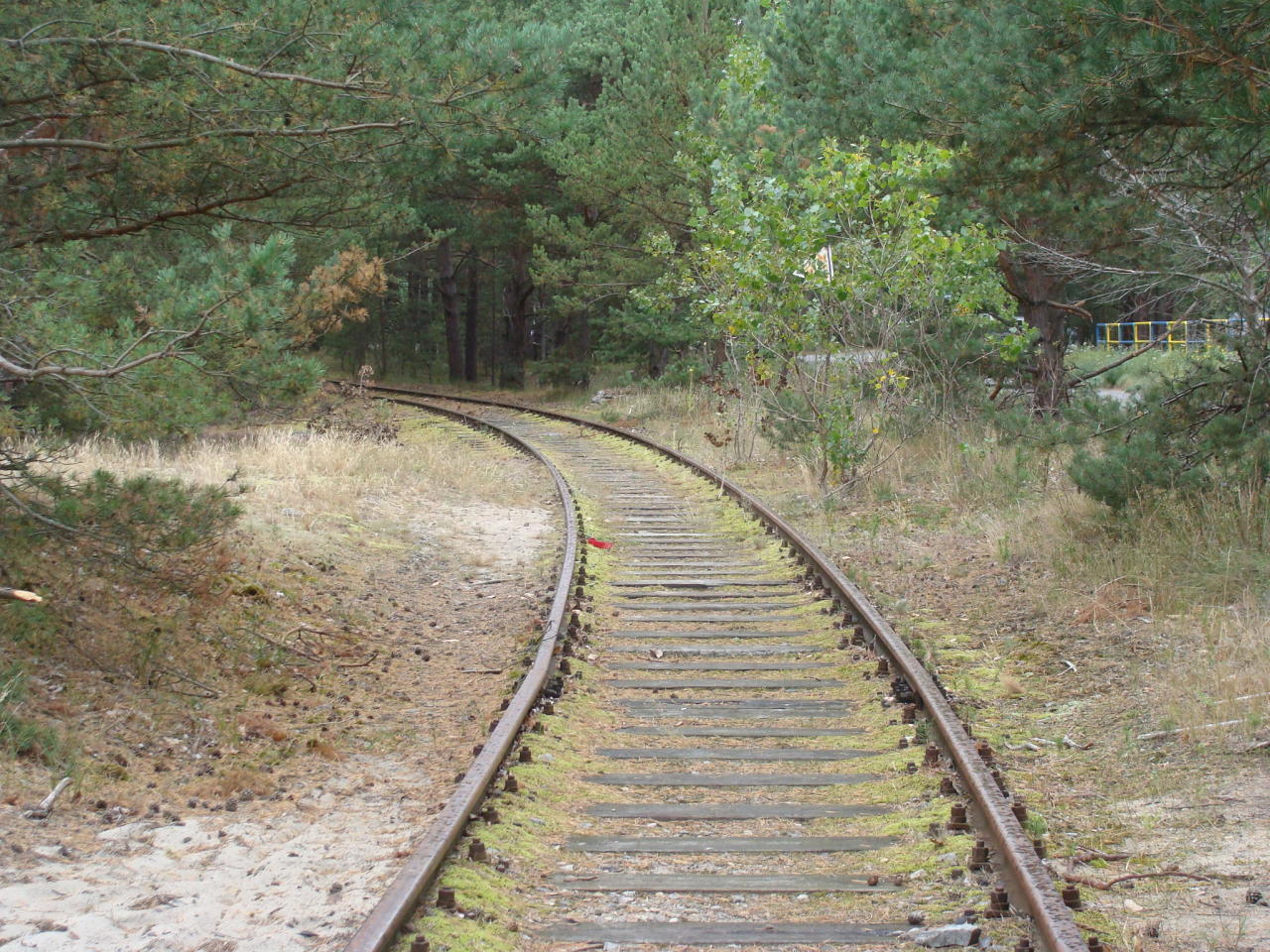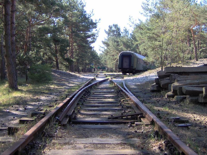 Tor od jednostki w stronę stacji,po prawej wagony na wydmie.