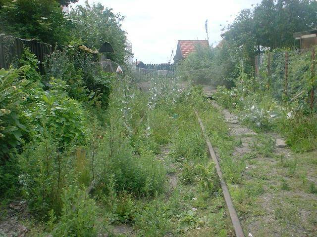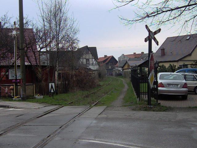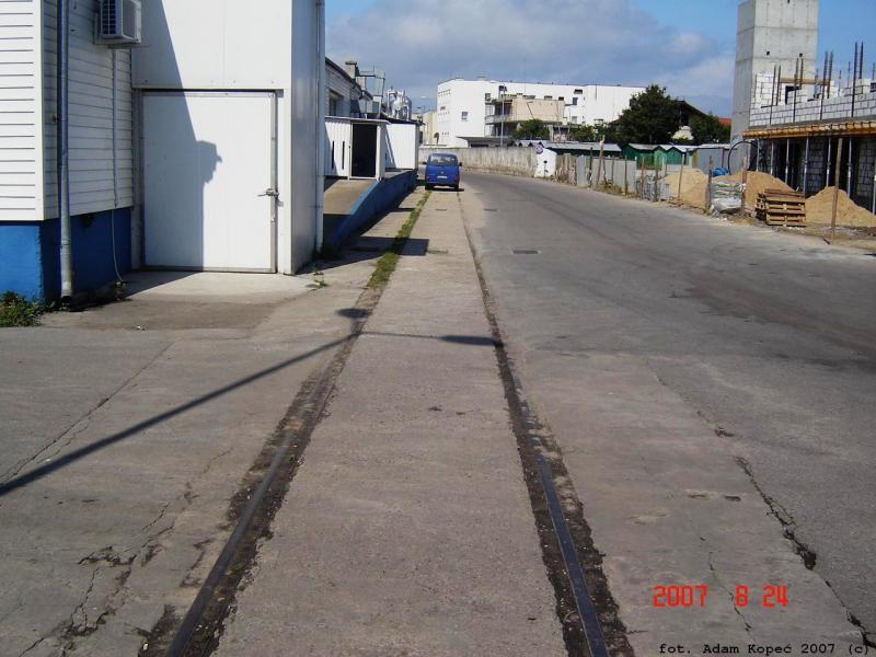 Odcinek Linii między stacją a portem rybackim. Widoczna brama "Fokarium", która przynajmniej raz została staranowana przez przetaczanie długich składów na stacji.