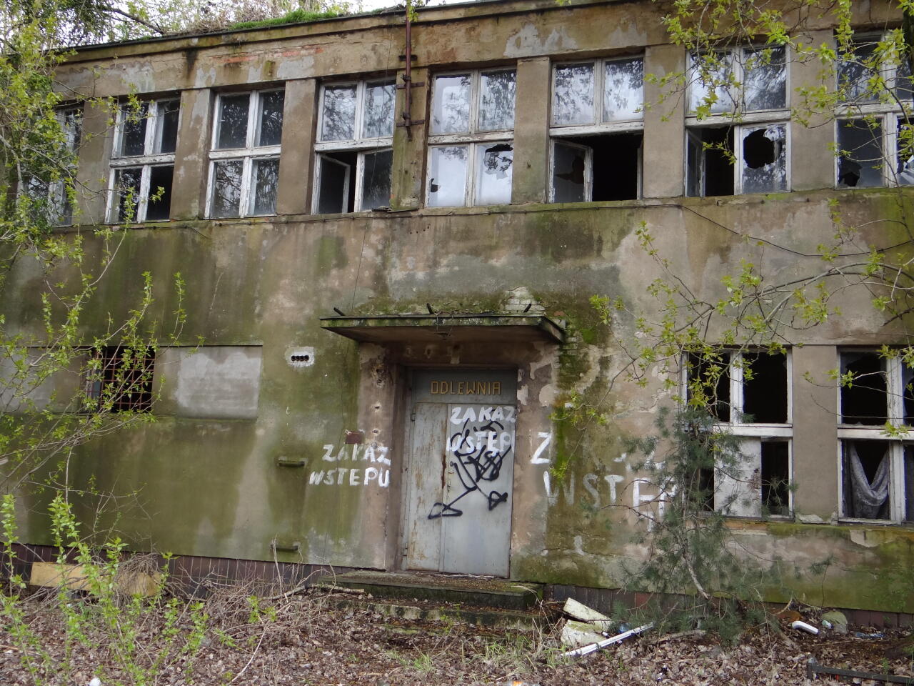 Budynek w głębi po prawej to ocalały, jeden z czterech magazynów które były usytuowane przy tej bocznicy. -