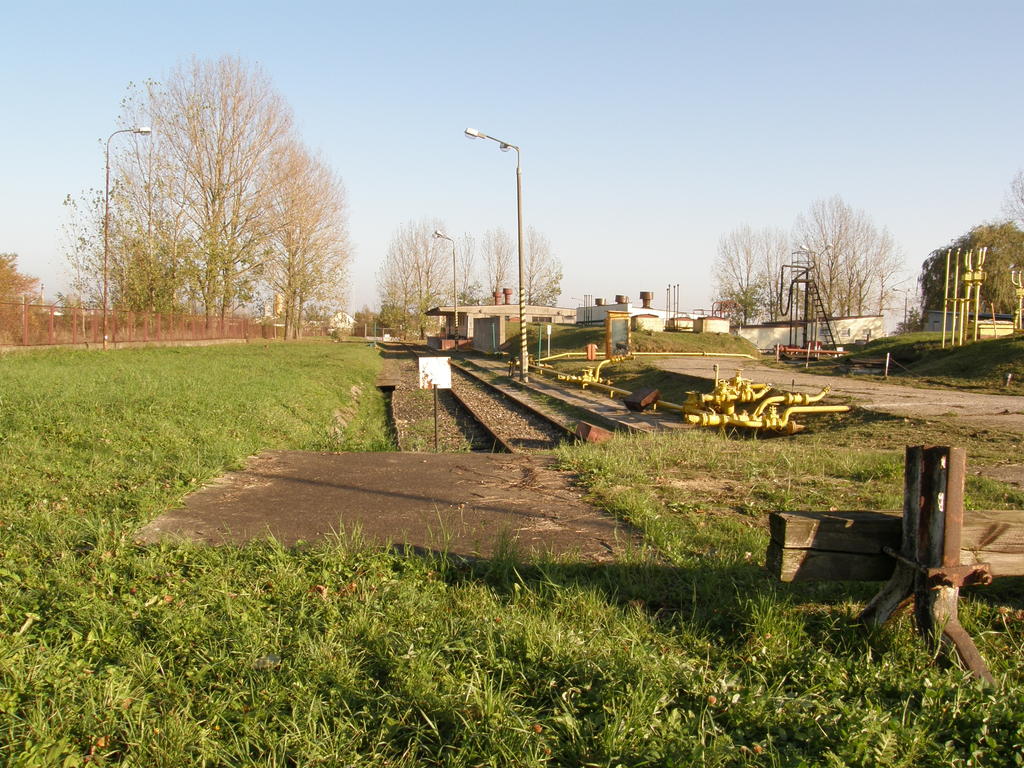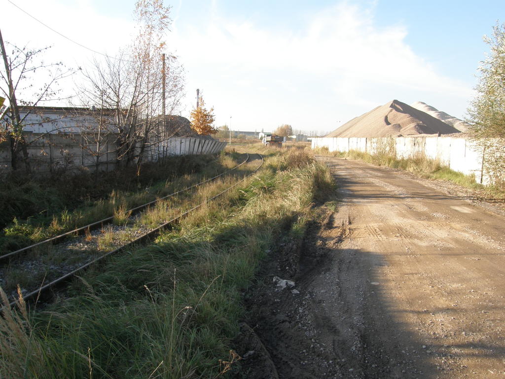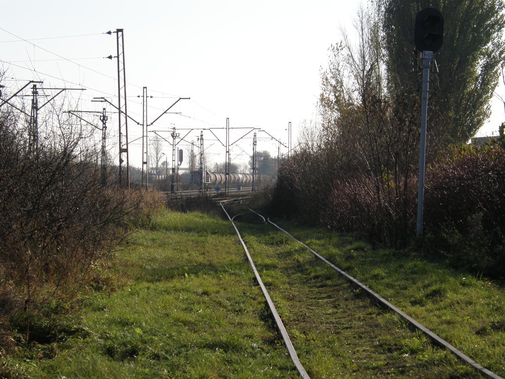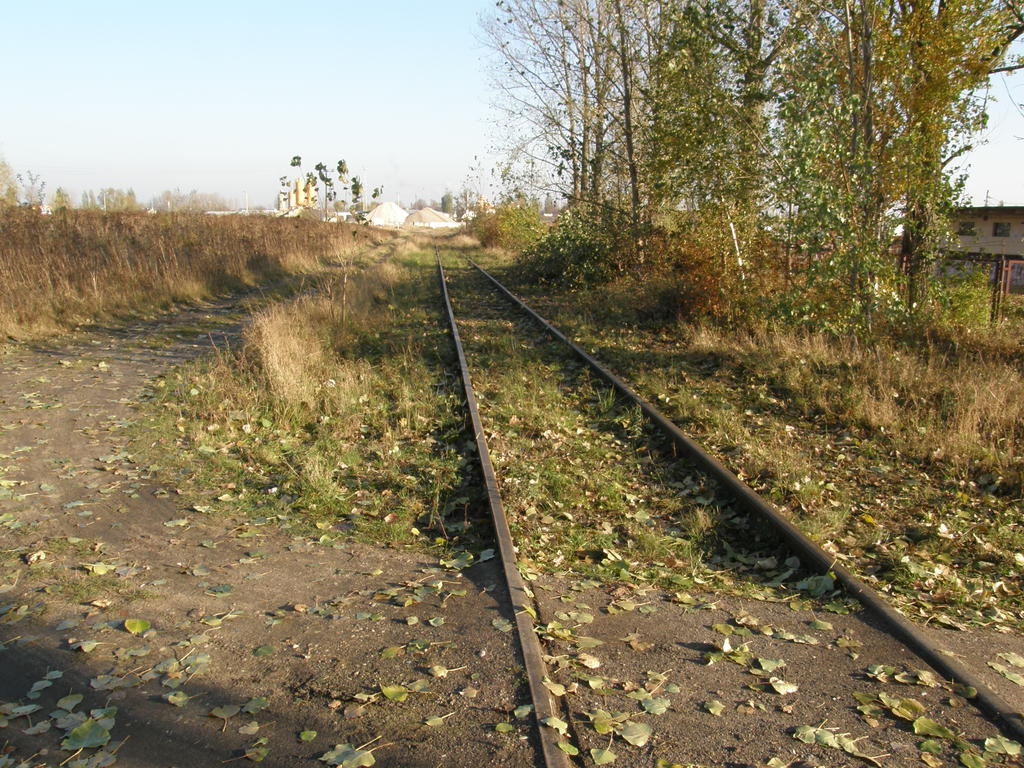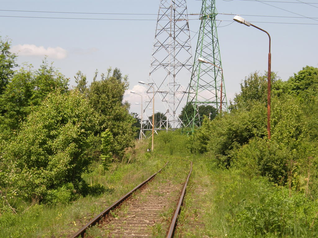 Bocznica Fabryki Maszyn Górniczych Pioma. Po prawej żeberko ochronne, po lewej tor ładunkowy. Na wprost dwa tory komunikacyjne i zdawczo-odbiorcze. Ok. 0,8 km.