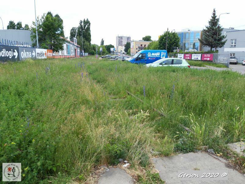 Zlikwidowana jednotorowa bocznica znajdująca się z tyłu magazynu należącego obecnie do hurtowni budowlanej Hiper-Glazur.