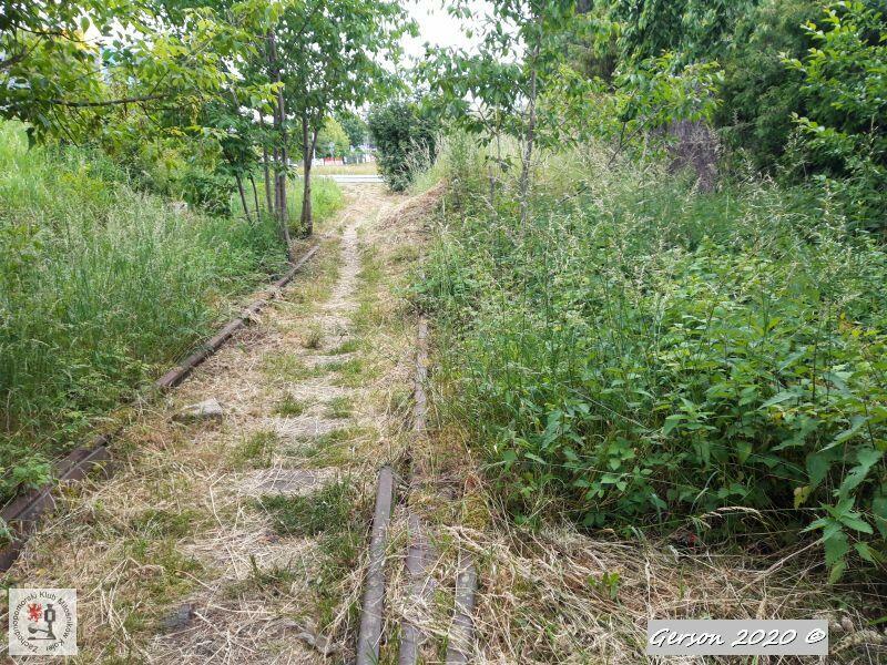 Ścieżka wydeptana przez mieszkańców pobliskiego osiedla. Zarośnięty tor znajduje po prawej stronie. Widok w kierunku ul. Santockiej i jednostki wojskowej.