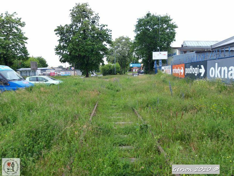 Zlikwidowana jednotorowa bocznica znajdująca się z tyłu magazynu należącego obecnie do hurtowni budowlanej Hiper-Glazur.