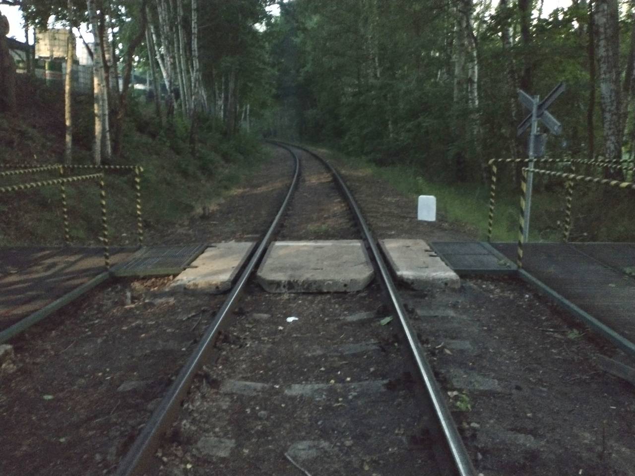 Ok. 1,3 km. Przejście dla ludzi od przystanku komunikacji miejskiej do Zakładu H-U Zygmunt Żarna. Widok w kierunku zachodnim (Olsztyn Główny). Pięknie odmalowany słupek, ale jeszcze bez oznaczenia.