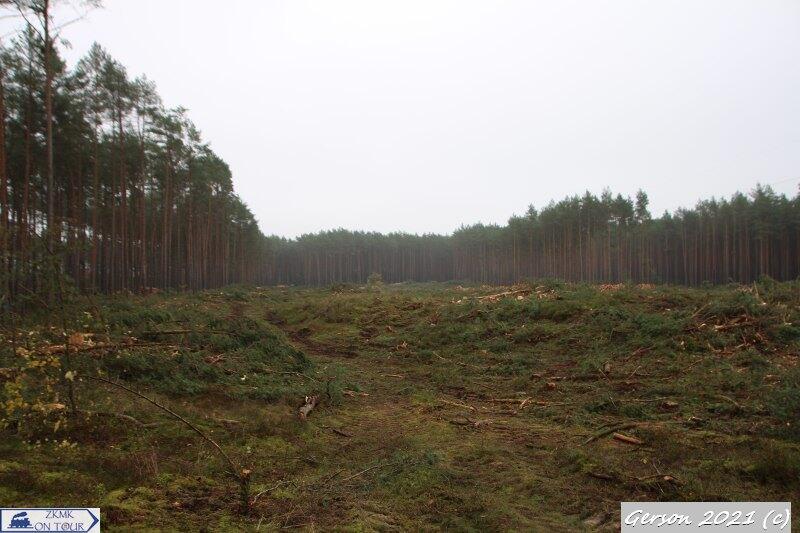 Wykarczowany fragment lasu pod budowę nowej drogi S3. W lewo Świnoujście Przytór, w prawo rampa przeładunkowa. Widok ze starotorza. Ciekawe czy zaplanowano wiadukt umożliwiający w przyszłości odbudowę bocznicy, czy też definitywnie wojsko zrezygnuje z tego rodzaju transportu?