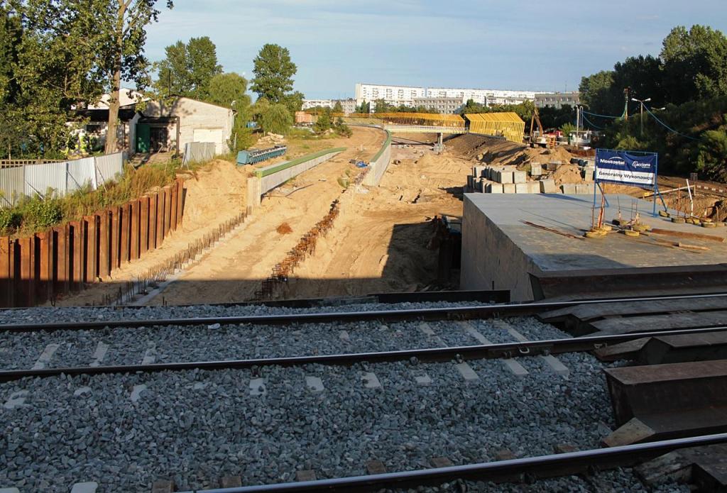 Przejazd na budowanym wiaduktem ul. Droga Zielona.