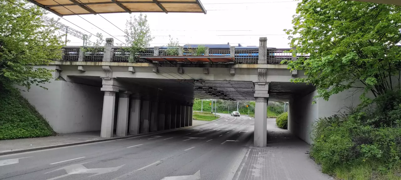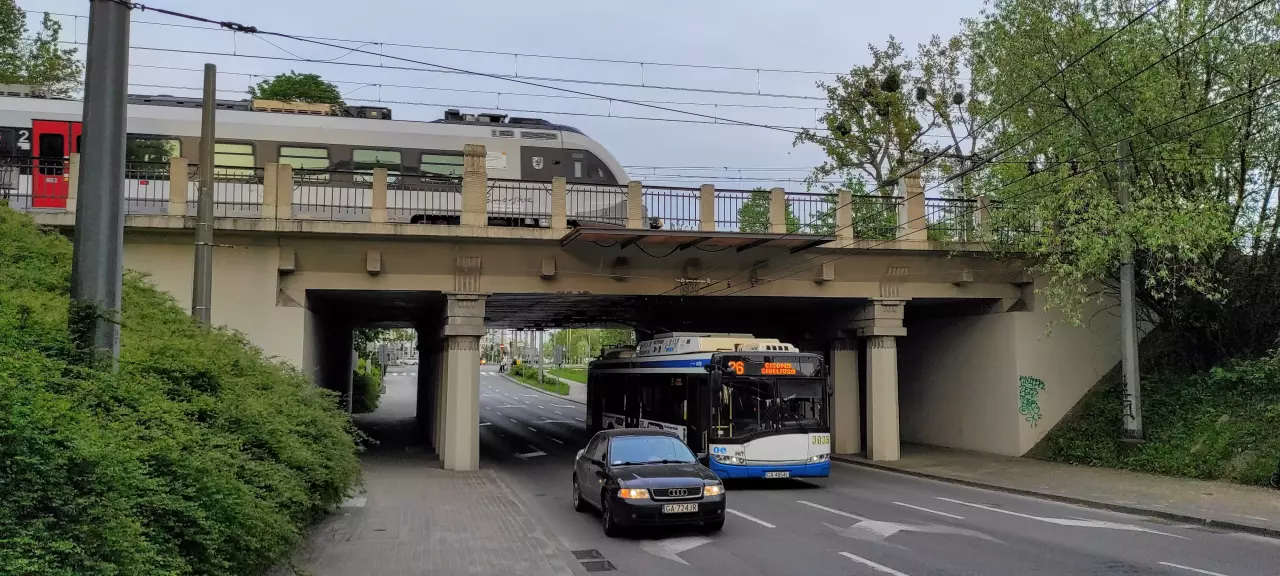 Wiadukt nad Aleją Marszałka Józefa Piłsudskiego linii nr 201 (szlak Gdynia Wielki Kack - Gdynia Główna), linii nr 202, 250 (szlak Gdynia Orłowo - Gdynia Główna), w lewo - kierunek Gdynia Główna, w prawo - kierunek Gdynia Wielki Kack (linia nr 201), Gdynia Orłowo (linia nr 202, 250).