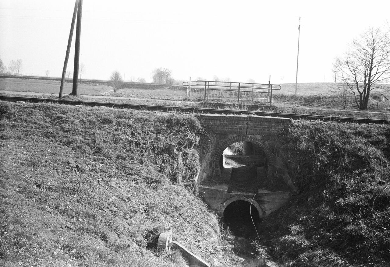 Rozebrany tor na przepuście na kanale (bez nazwy) na odcinku Ośno Wieś - Ośno Wąskotorowe.