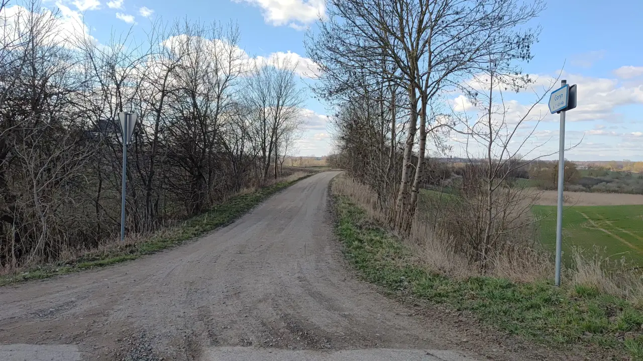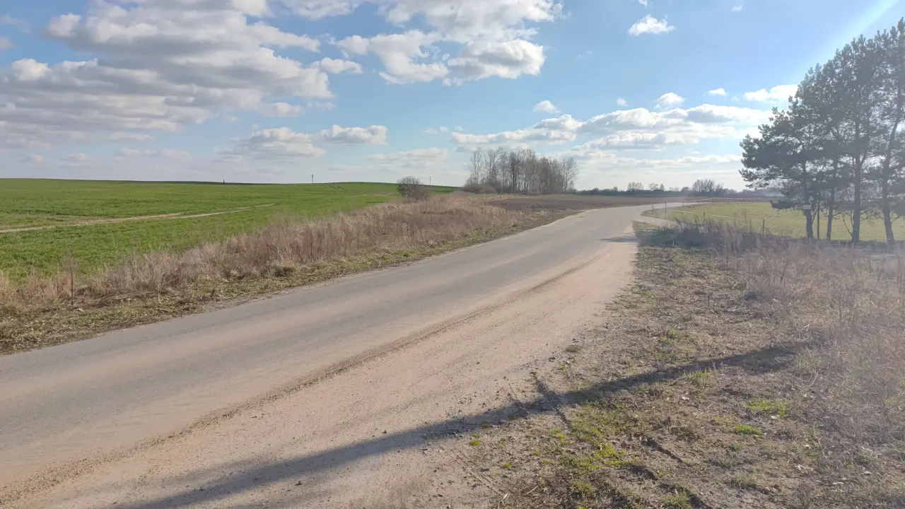 Krótki przekop na wysokości domu - Piotrowice 96. Widok w kierunku Biskupca Pomorskiego Miasto.