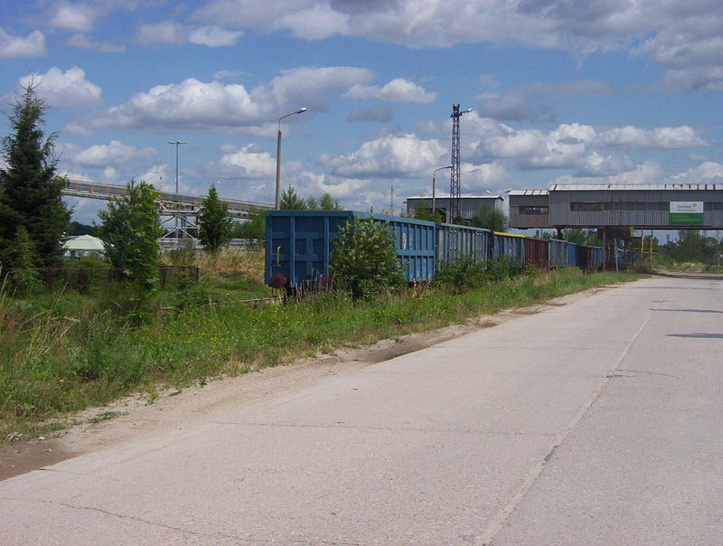 Tory w pobliżu rampy załadunkowej kopalni "Mietków". Widok w kierunku Wrocławia.