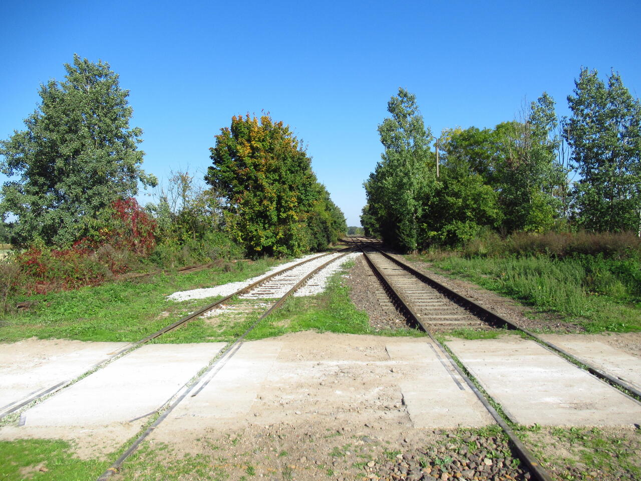Przejazd kolejowy na wschód od ładowni kruszywa (na wprost). Widok w kierunku południowo-zachodnim (koniec torów).