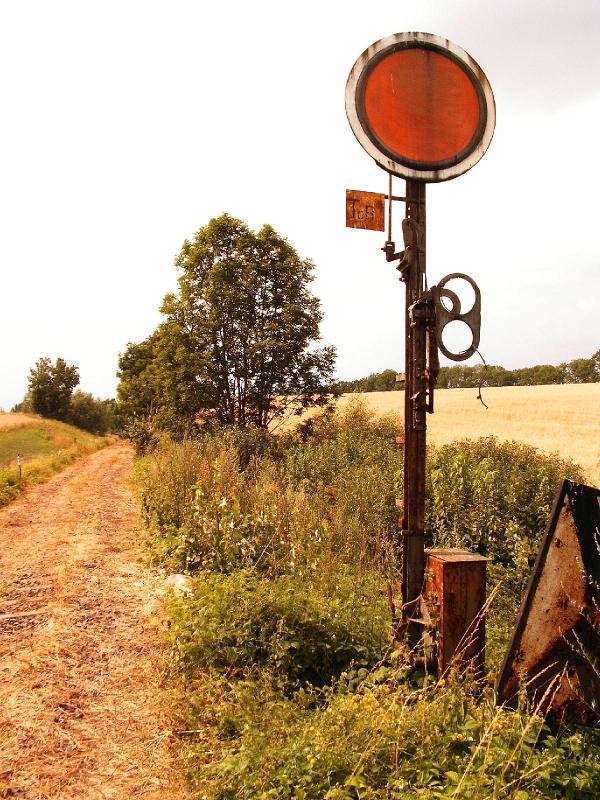 Tarcza ostrzegawcza przed semaforem wjazdowym w kierunku Sątop! Semafora nie ma już dość dawno! A tarcza zniknęła trzy dni po zrobieniu zdjęcia!