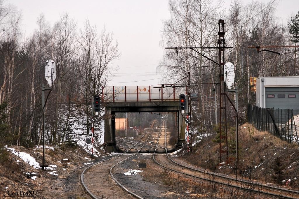 Wjazd na JCC ( tory za mostem w lewo). W tle wiadukt DK79. Tory wprost w kierunku Brzęczkowic.