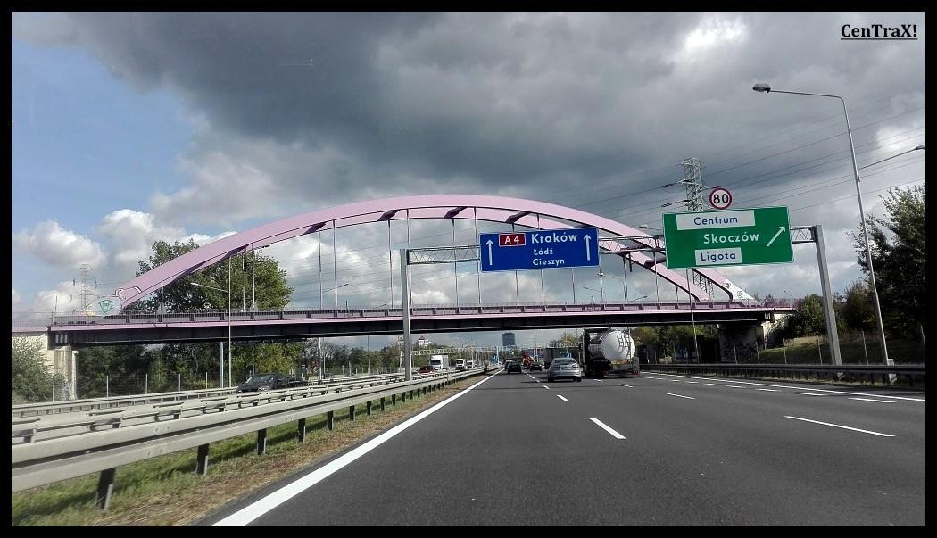 Wiadukt nad autostradą A4. W lewo Poniatowski, prawo Jęzor.