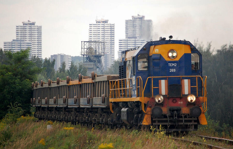 Katowice. Tamarka z pustym składem wraca Magistralą Południową z szybu Maciej KWK Halemba-Wirek.