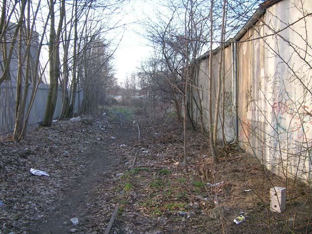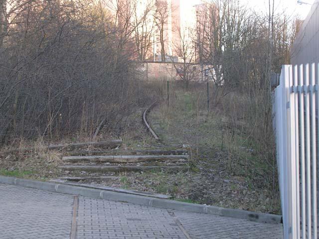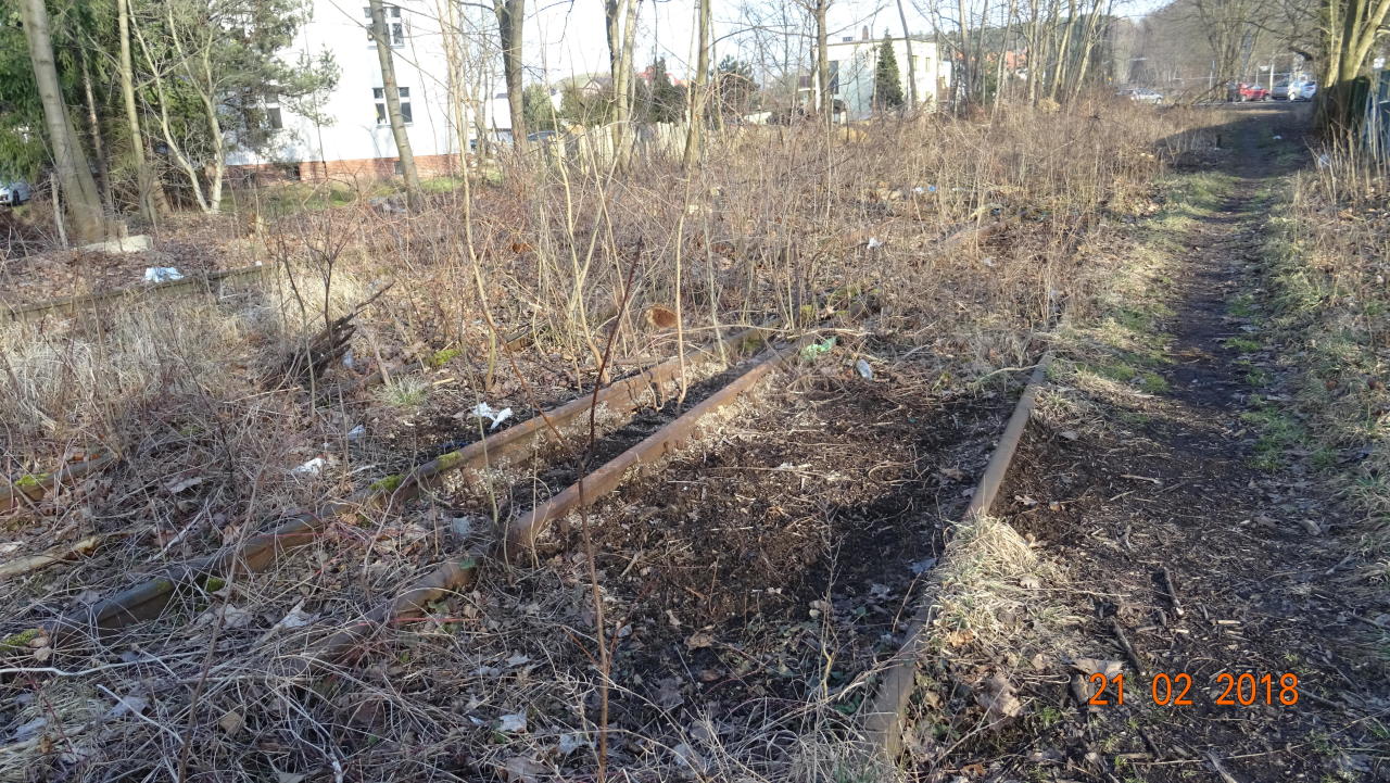 Wygląda na to, że tor miał bocznicę lub po odcięciu od strony ul.Hetmańskiej był wykorzystywany od strony ul.Inflanckiej? W tle budynek 34-35 na os.Bohaterów II Wojny Światowej, jeszcze bez kościoła. Lata 70/80?