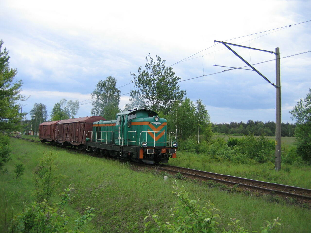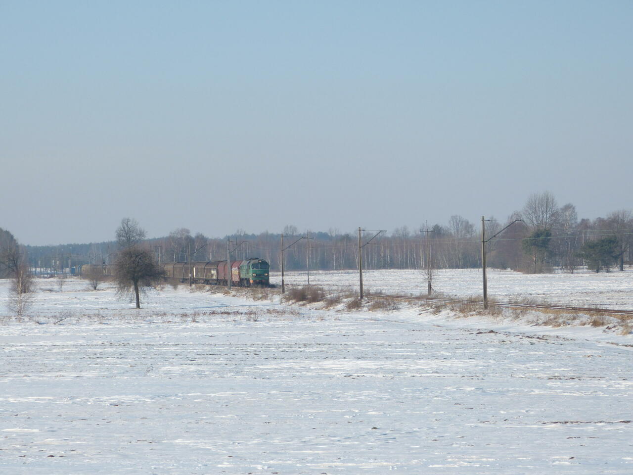 Skład towarowy ruszył w kierunku Tłuszcza ze stacji Emilianów, której semafory widoczne są z lewej strony zdjęcia.