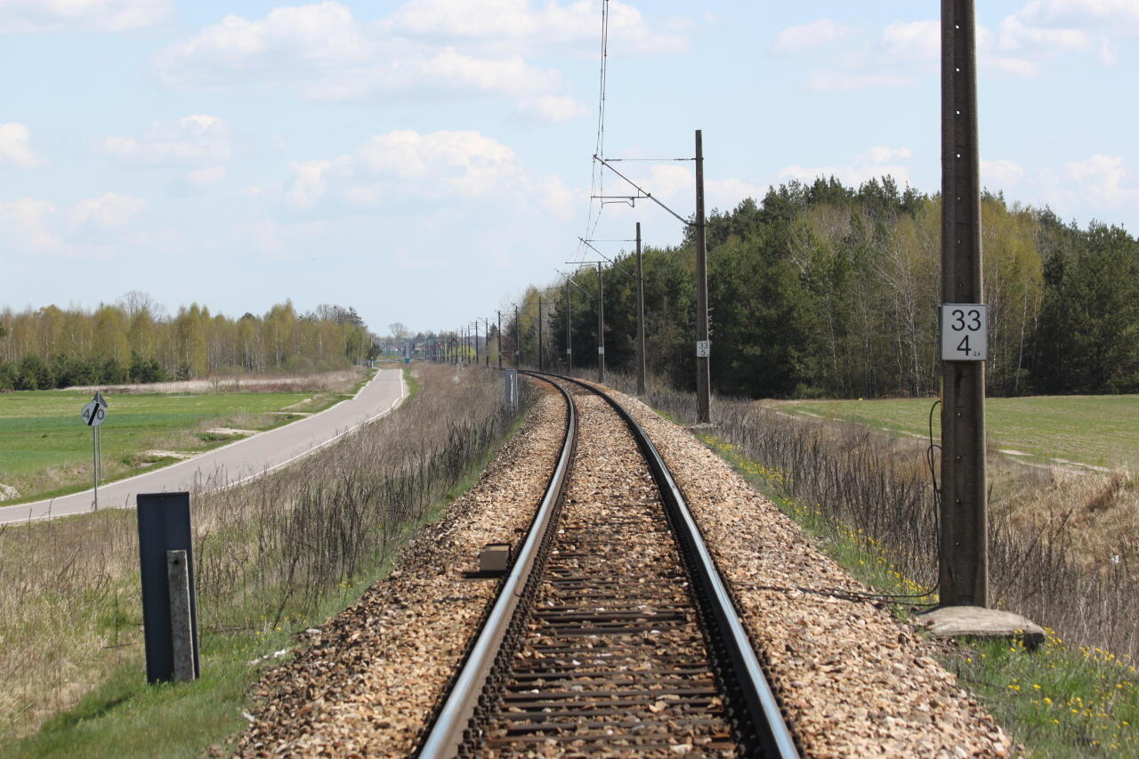 W stronę Piask (Łajsk), po prawej bocznica i zabudowania PKP Energetyki.
