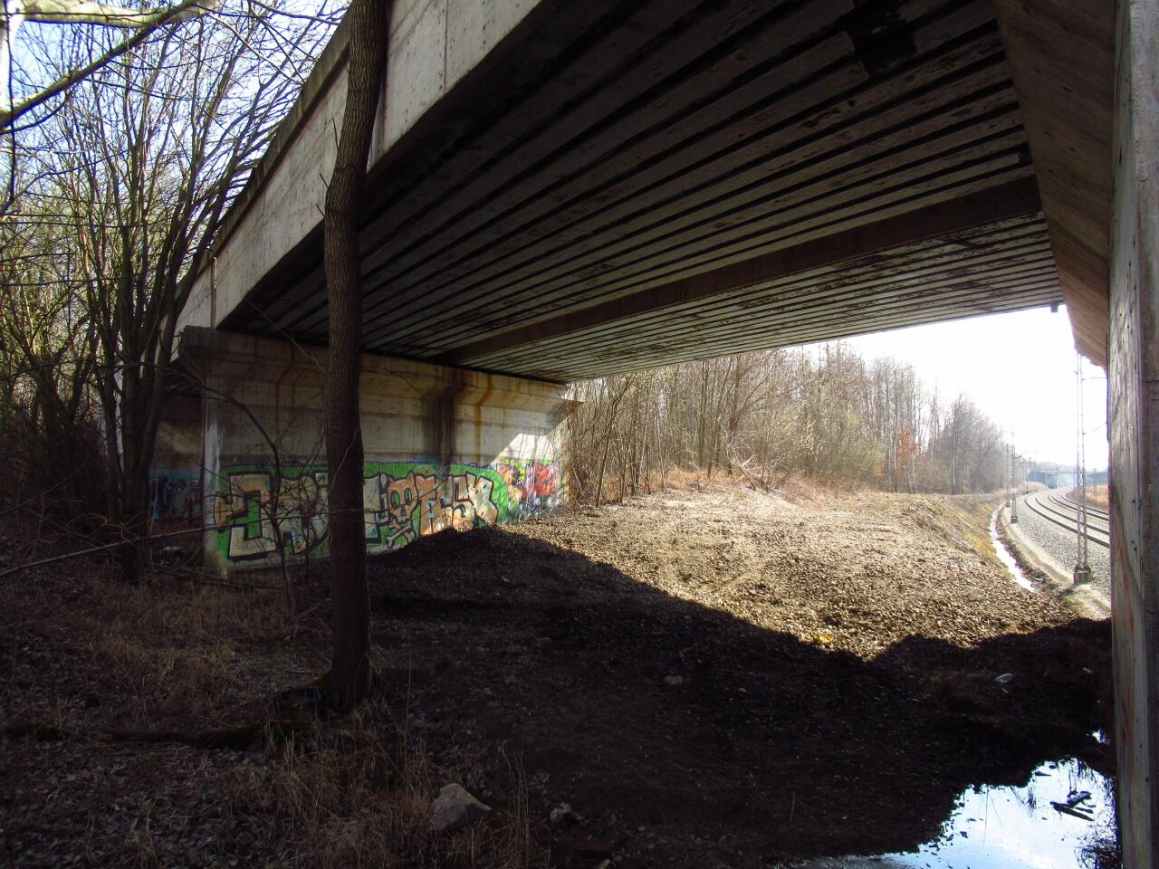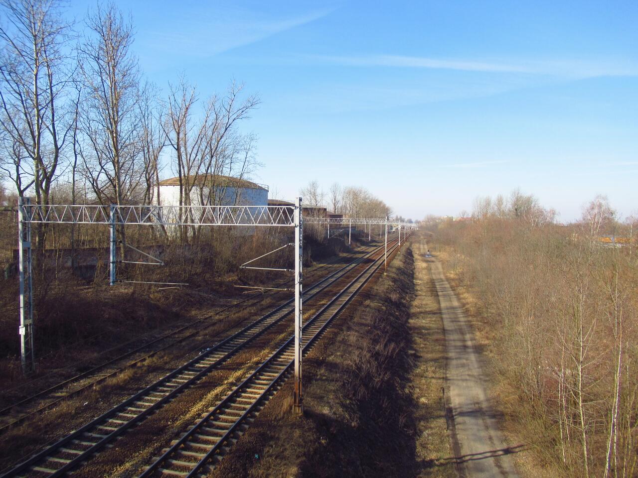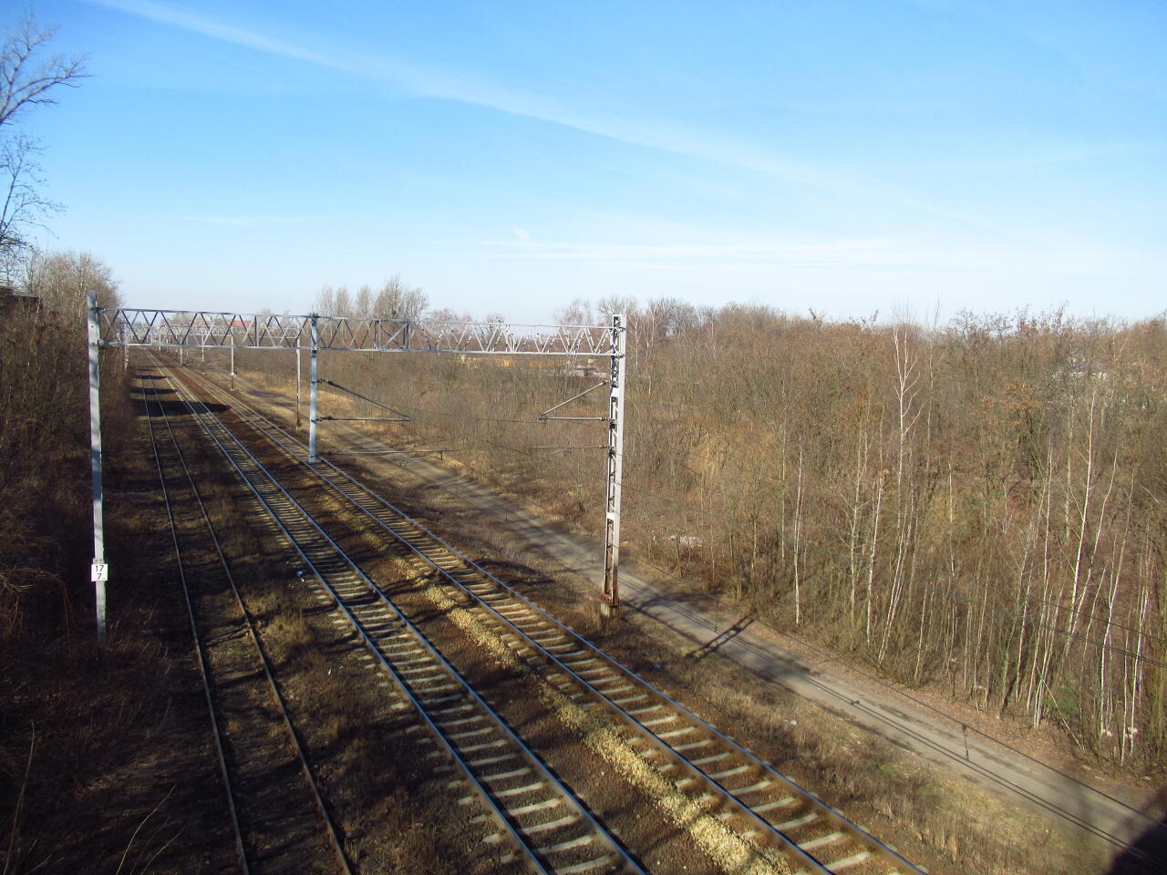 Wiadukt nad ul. Piastowską. Na pierwszym planie miejsce, gdzie miała być Kolej Ruchu Regionalnego. Z prawej strony tory LK 137. Widok w kierunku południowo-wschodnim (Ruda Chebzie).