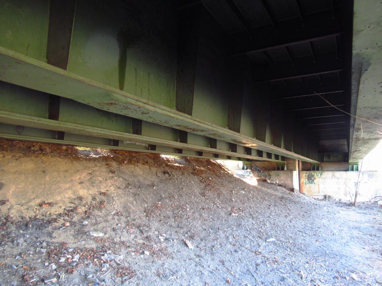 Niedokończony wiadukt w ciągu niedoszłej KRR; okolice skrzyżowania ulic Szczęść Boże i Torowej w Rudzie Śląskiej. Widok od spodu.