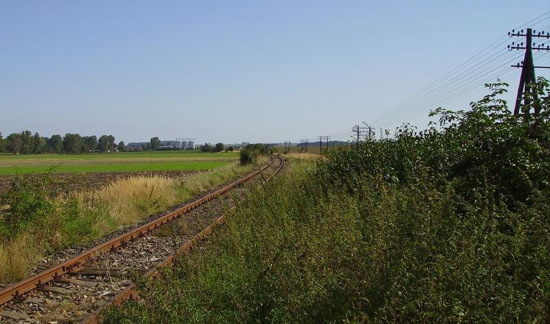 Rozebrana linia kolejowa relacji Głubczyce - Krnov. Zdjęcie wykonane ok kilometra od dworca w Głubczycach.