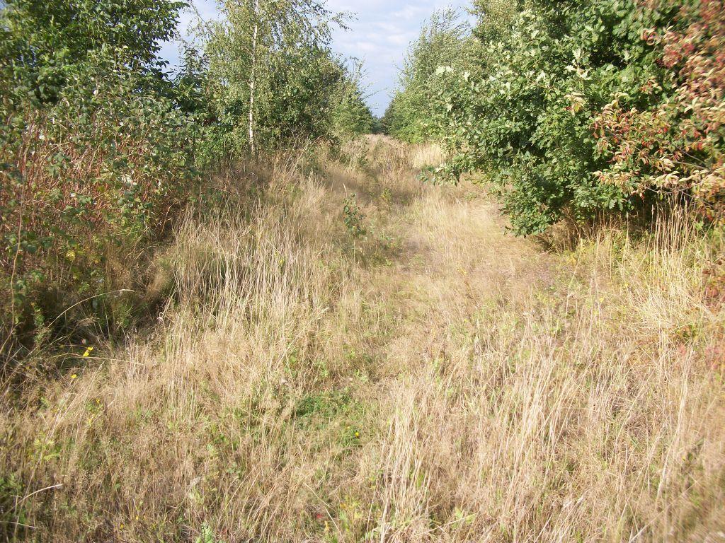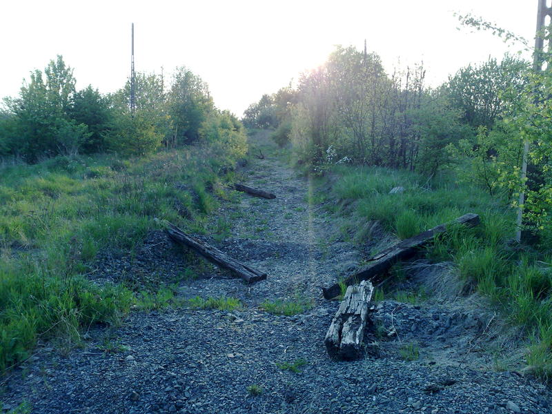 Tłuczeń na dawnym torowisku, tuż przed granicą PL/CZ - widok w stronę Krnova.