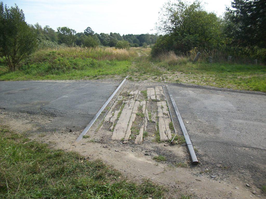 Fragment rozebranej linii Głubczyce - Krnov. Na zdjęciu przejazd drogowy w Pietrowicach Głubczyckich.