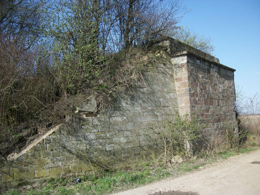 Zachodni przyczółek rozebranego wiaduktu pomiędzy stacją Głubczyce i przystankiem Zopowy Równe.