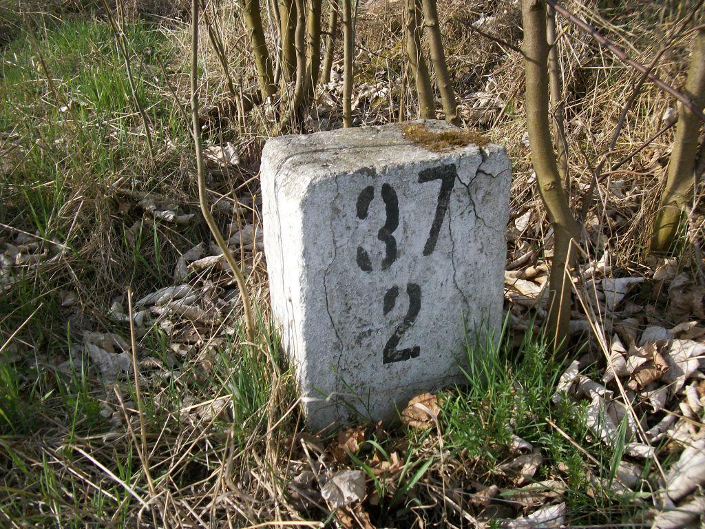 Słupek hektometryczny 37.2, tuż przed wjazdem na stację Głubczyce.