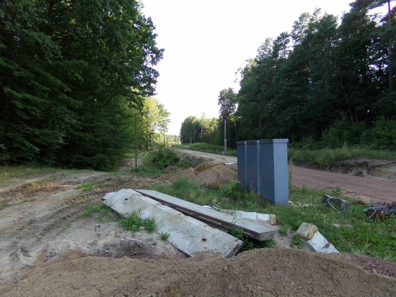 Widok w kierunku południowym (Działdowo) z wiaduktu (ok. 71,8 km) obwodnicy Olsztyna. W centrum zdjęcia widoczne pozostałości przyczółka wiaduktu, prawdopodobnie zniszczonego w latach czterdziestych.