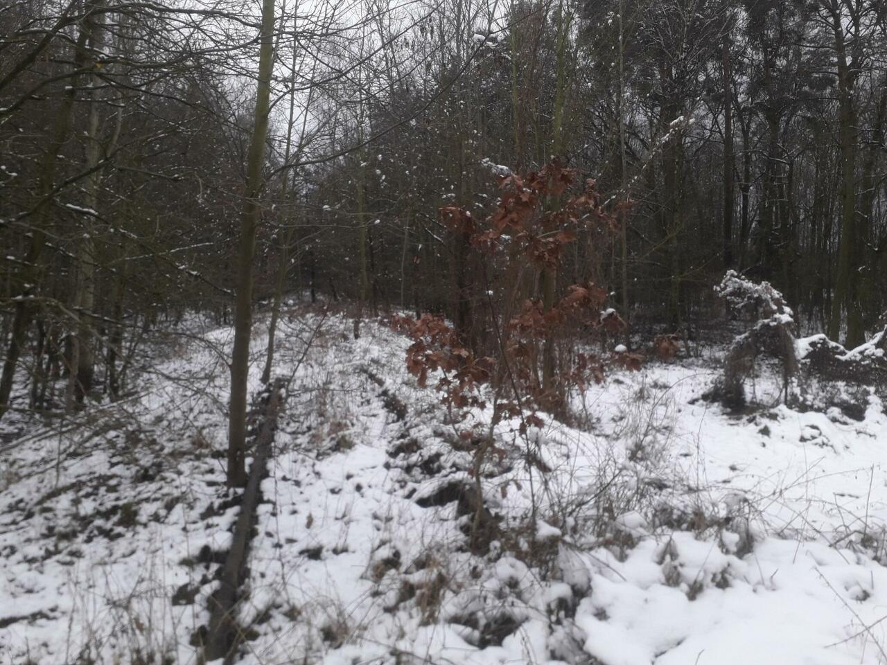 Trochę jestem zawiedziony, że nie zostały żadne ślady po linii w terenie. Cieniowanie ISOK Geoportalu nie pokazuje żadnych nasypów, wykopów. Miejscami była linia przebiega przez nowe osiedla, drogi, ale zwłaszcza na początku biegnie w takim terenie, że coś powinno po niej pozostać. Nic! Najbardziej widoczny jest łuk linii zaraz po rozwidleniu tuż obok ulicy Bocznej.