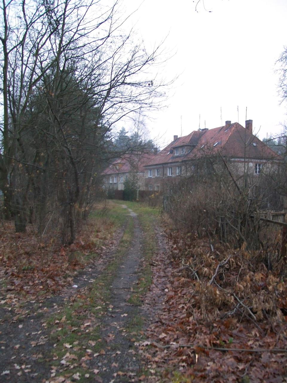 Starotorze w okolicy osiedla domów kolejowych przy ul. Mickiewicza kilkadziesiąt metrów od odejścia z układu torowego stacji Węgliniec. Z prawej strony, za ekranem akustycznym, biegną tory do Zgorzelca. Widok w kierunku zachodnim (Czerwona Woda).