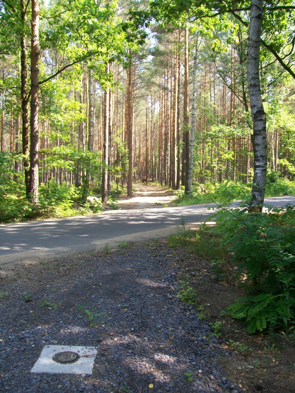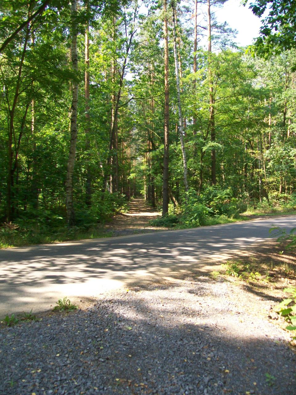 Starotorze pomiędzy Czerwoną Wodą Północną a Zgorzelcem Nadleśnictwo jest przekształcane na ścieżkę rowerową. Tutaj należy przyklasnąć tej inicjatywie, bo sporo ludzi z Czerwonej Wody dojeżdża do Węglińca rowerem - teraz będą mogli w cywilizowanych warunkach. Wzdłuż DW 296 ścieżka ma już nawierzchnię. Widok w kierunku północnym (Zgorzelec Nadleśnictwo).