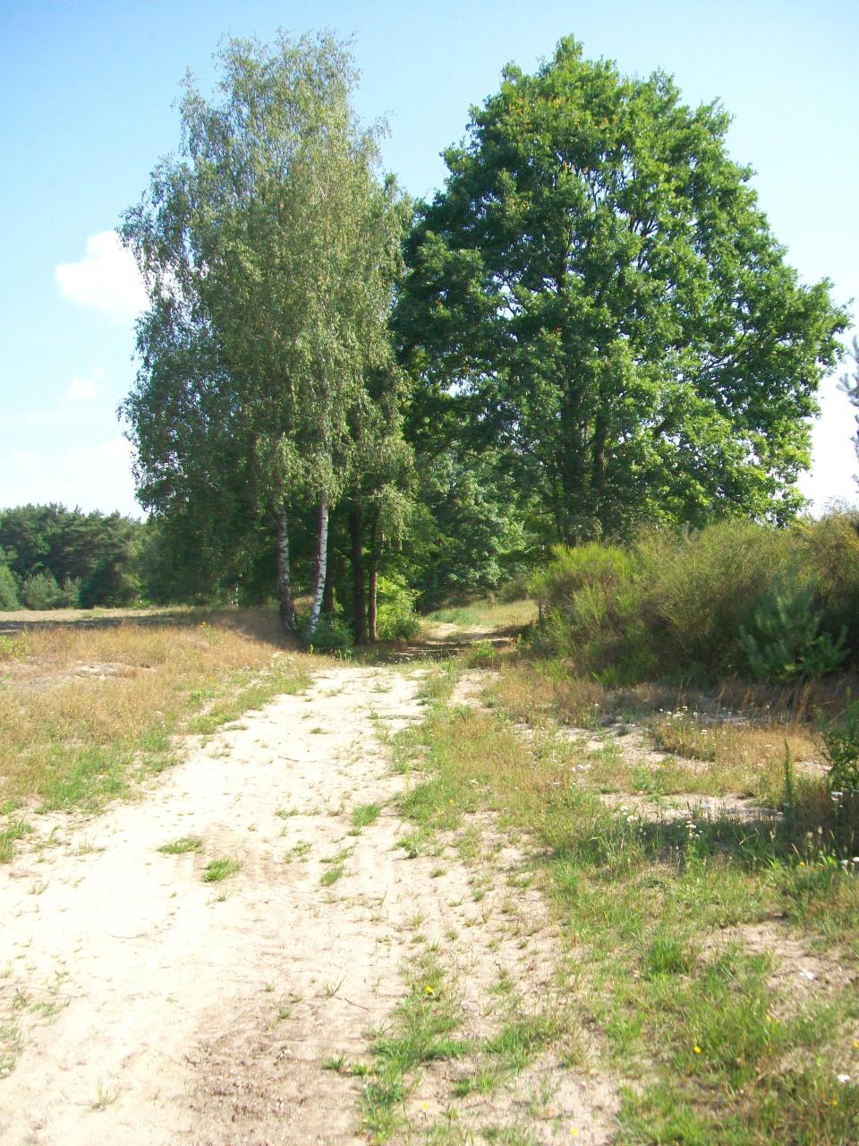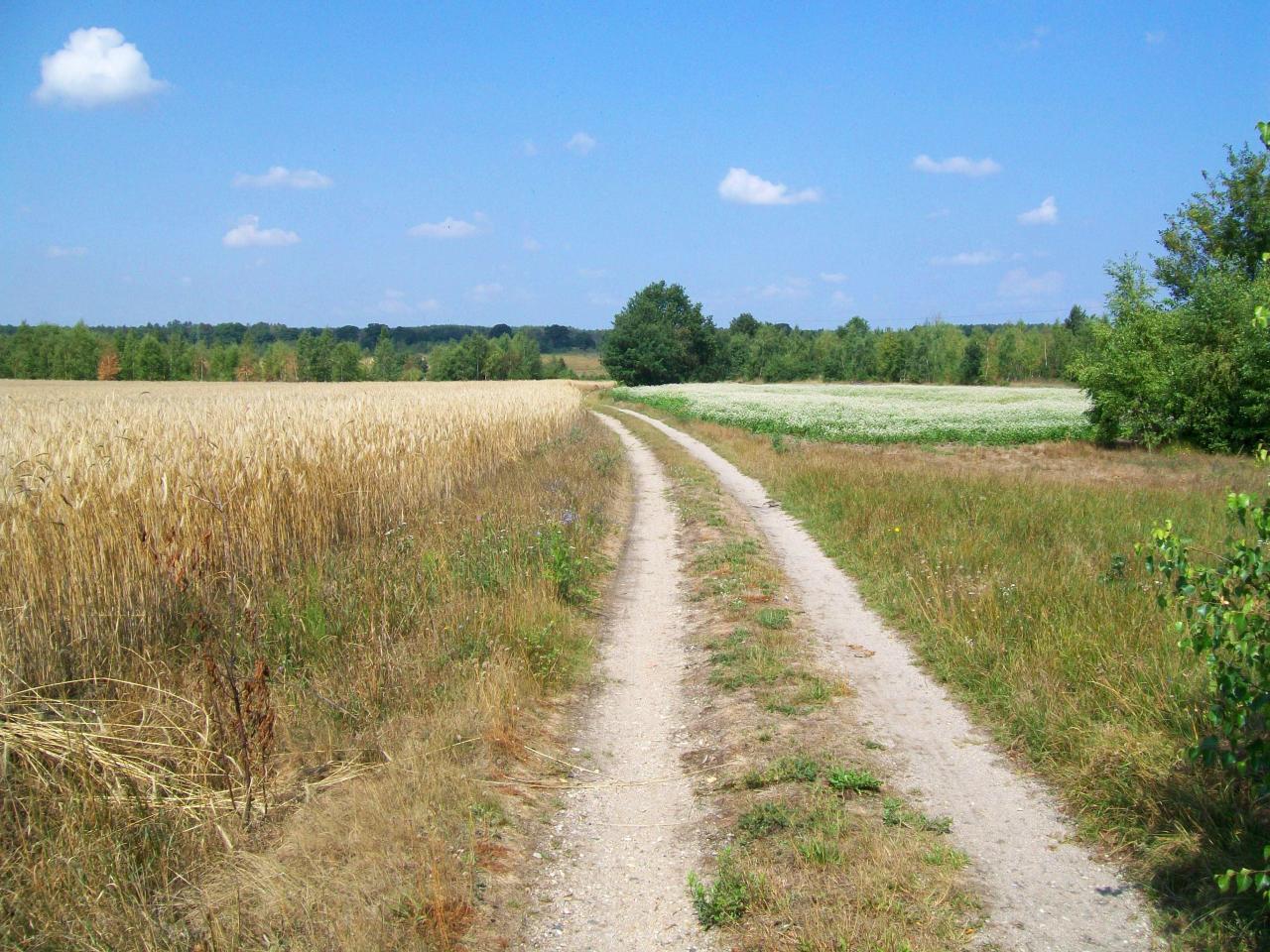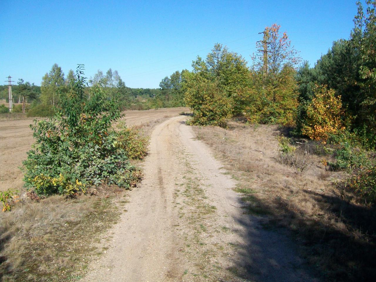 Po około 2 kilometrach od Węglińca starotorze do Czerwonej Wody odbija łukiem na zachód od DW 296. Widok w kierunku południowo-zachodnim (Czerwona Woda).