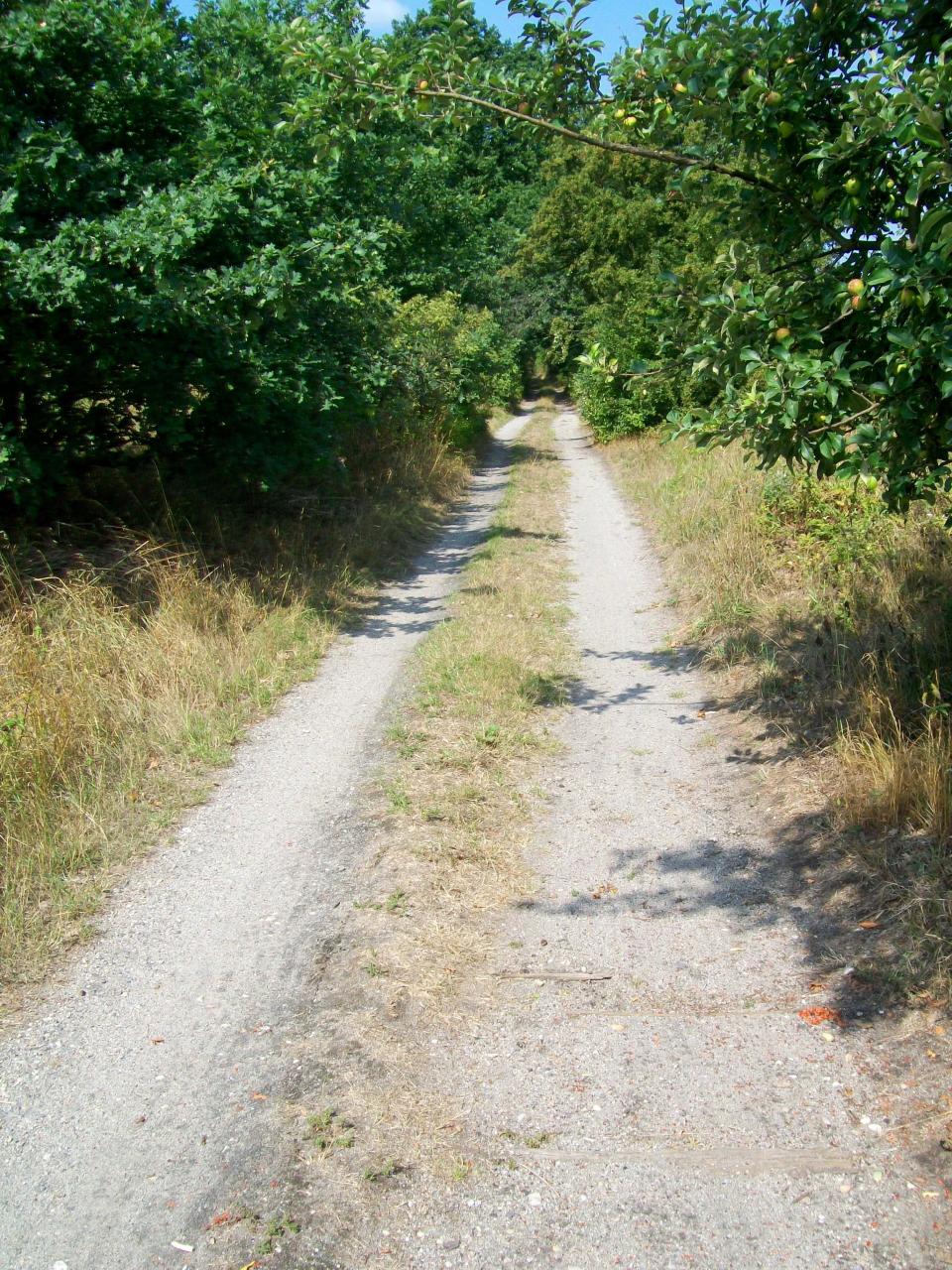 Przez kilka kilometrów od opuszczenia Węglińca tor szedł wzdłuż DW 296 (z prawej strony). Widok w kierunku północnym (Węgliniec).