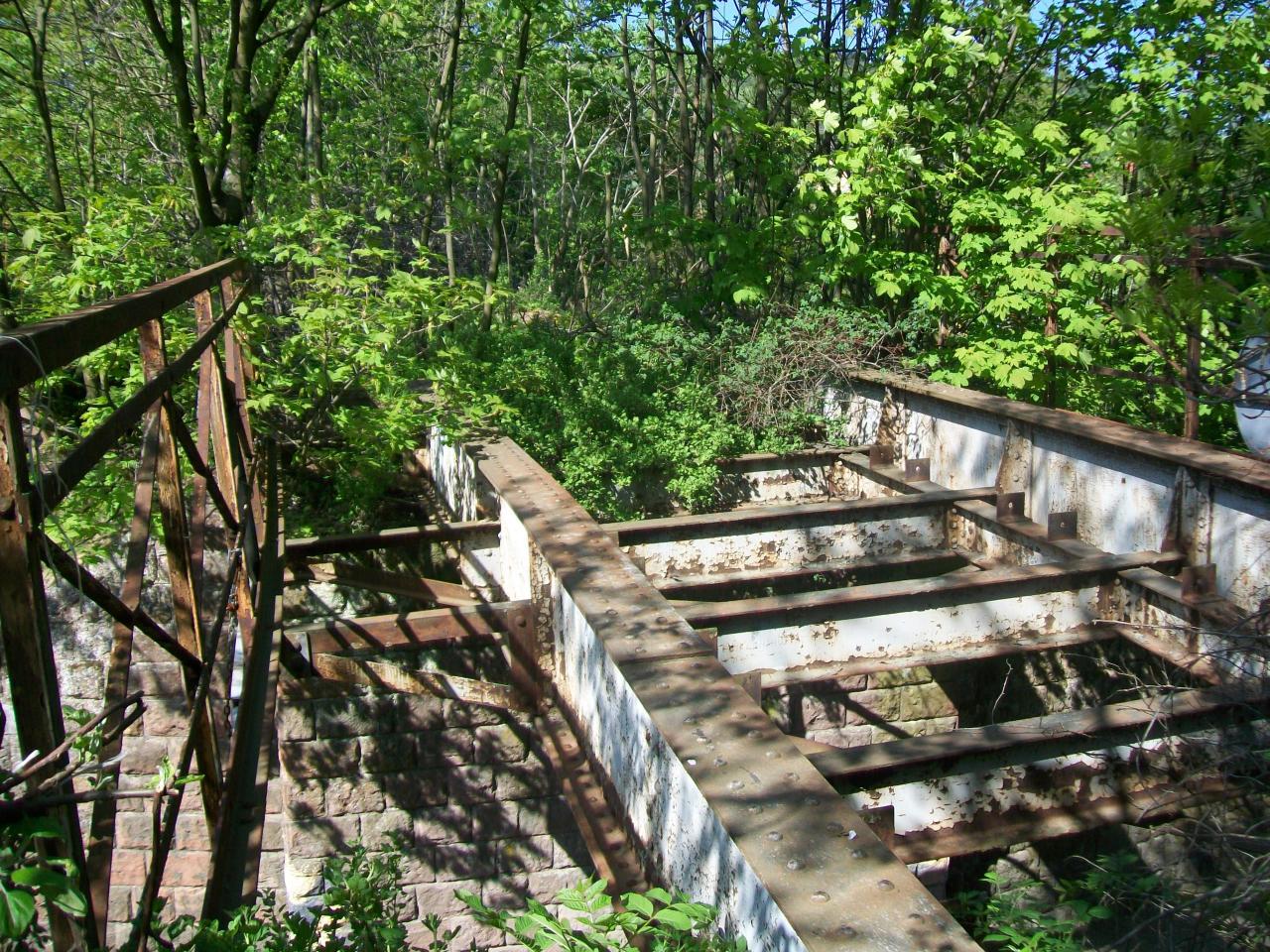 Wiadukt kolejowy w Pisarzowicach - pozostałości konstrukcji. Widok w kierunku zachodnim (Kowary, Mysłakowice).