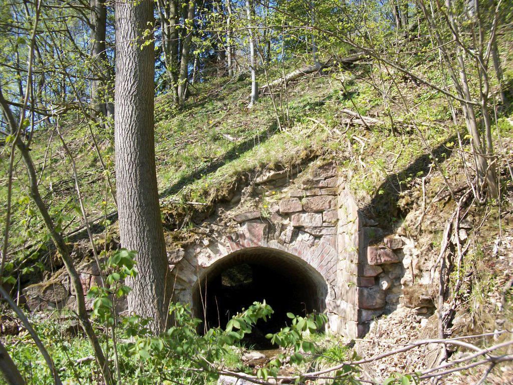 Sypiący się przepust w wysokim nasypie pomiędzy przystankami Srebrna Góra Twierdza i Nowa Wieś Kłodzka.