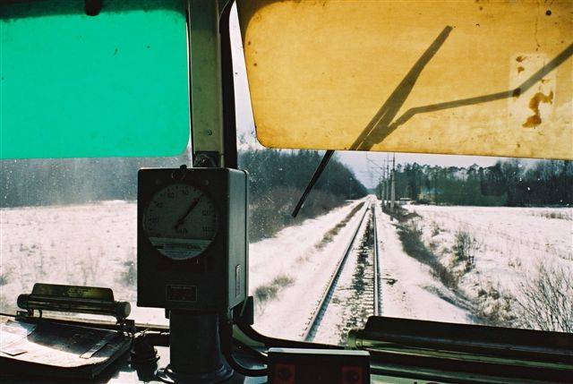 Widok z kabiny EU07-34 przy 100km na godz. pomiędzy Rogoźnem i Obornikami.