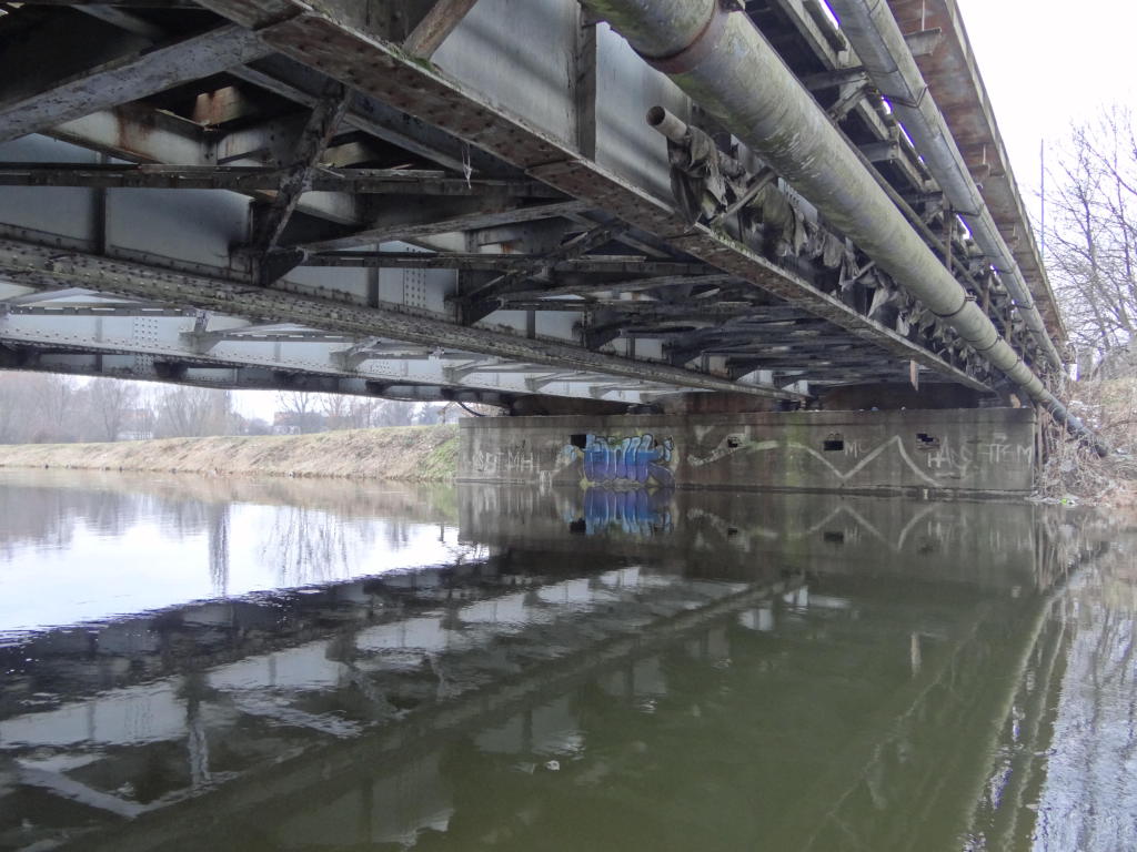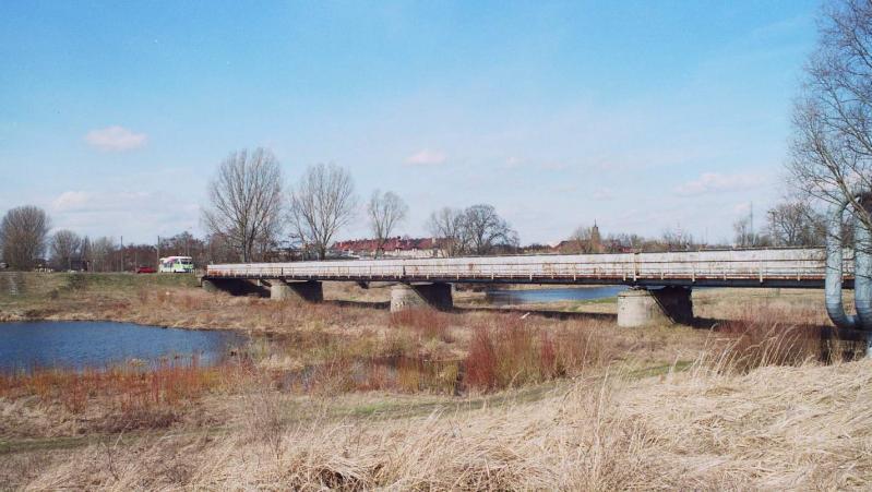 Dwuprzęsłowy most nad Obrą. Widok w kierunku Międzychodu i Zbąszynka. 30,4 km / 23,4 km.
