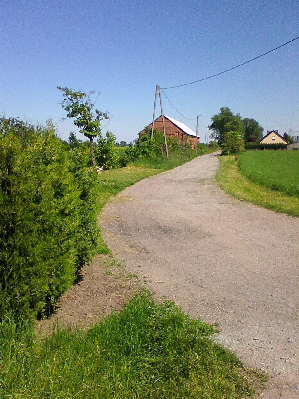 Jak się przypatrzeć, to wiadomo którędy przebiegała, mimo upływu czasu. Można też popytać miejscowych, ale tych starszych, bo młodzież nawet nie wie że była tam linia kolejowa.