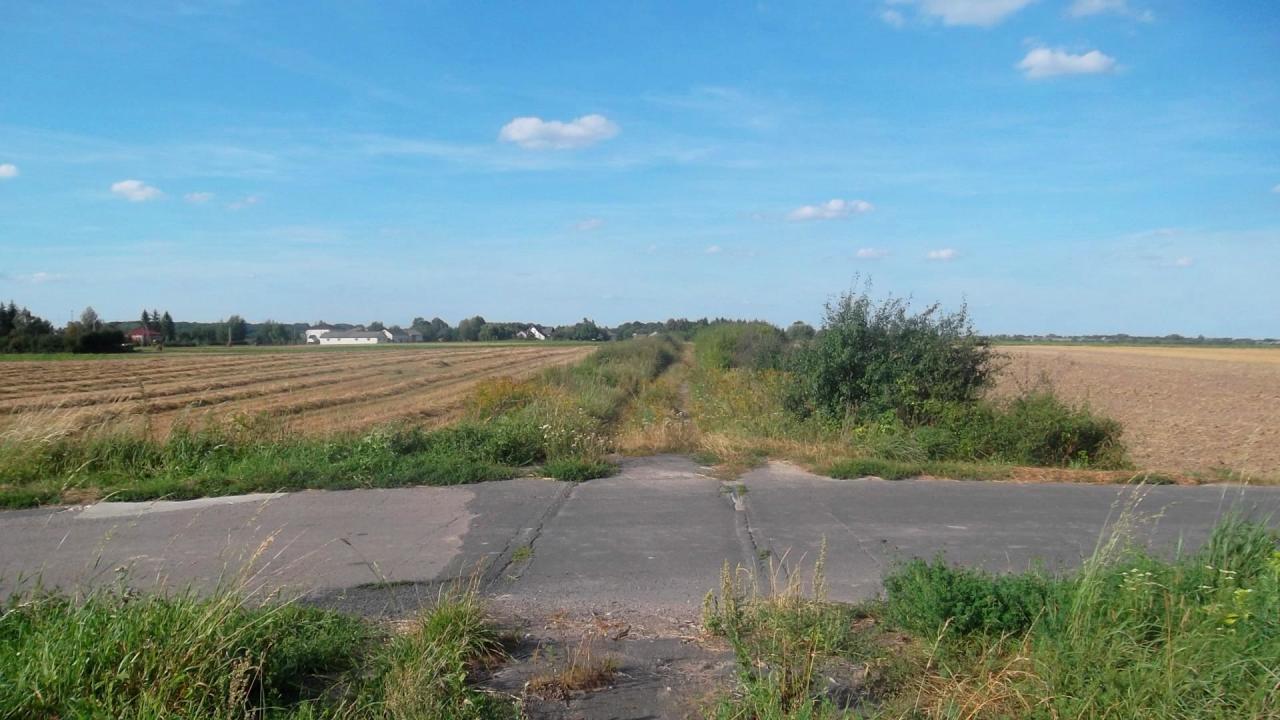 W miejscu niewielkiego wzniesienia na powierzchni drogi gruntowej był przejazd kolejowy. Widok w kierunku wschodnim (w lewo Werbkowice, w prawo Łaszczów).