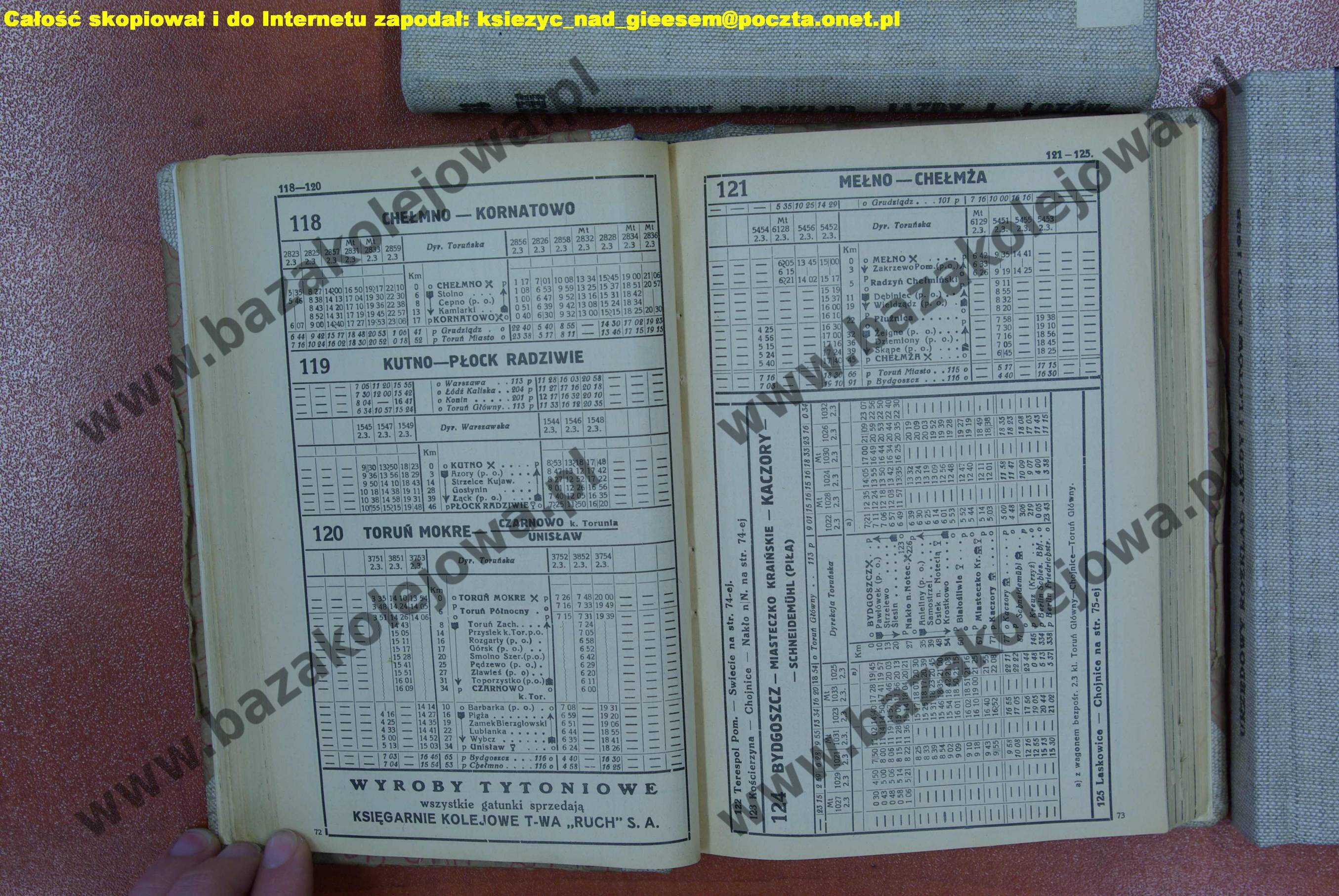 Rozkład Polska, zima 1938/1939, Str. 72-73, Tab. 118, 119, 120, 121, 124