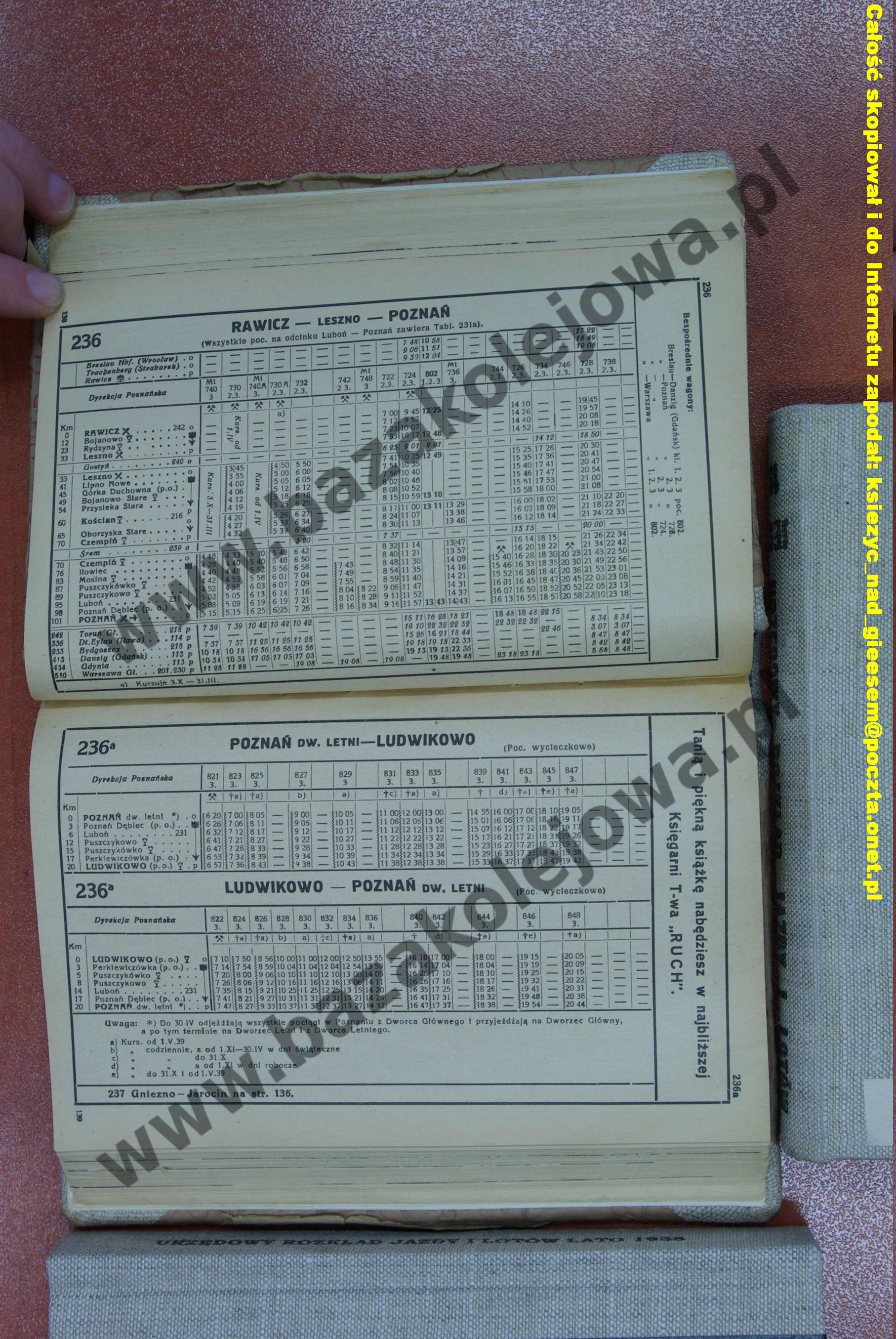 Rozkład Polska, zima 1938/1939, Str. 138-139, Tab. 236, 236a