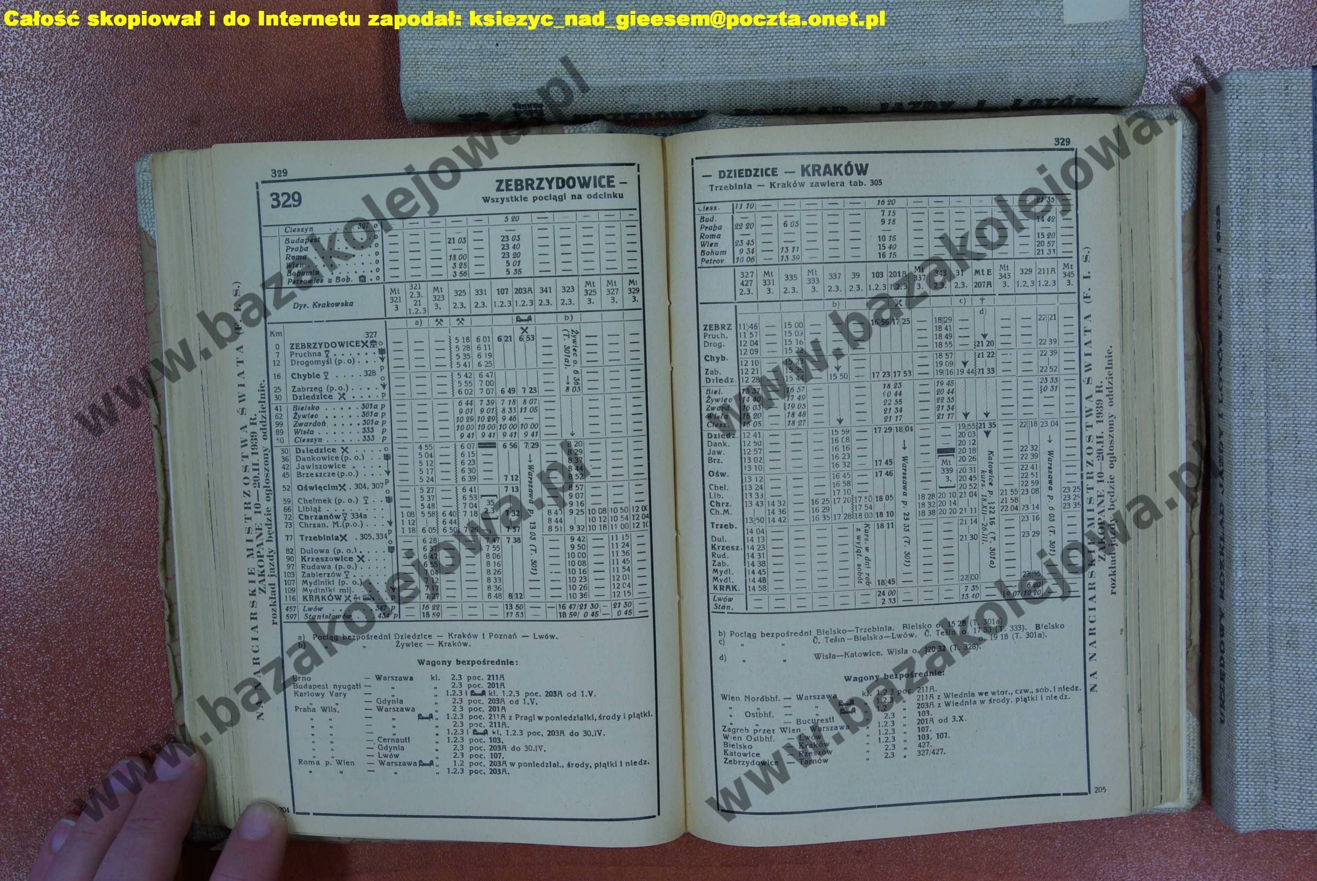 Rozkład Polska, zima 1938/1939, Str. 204-205, Tab. 329