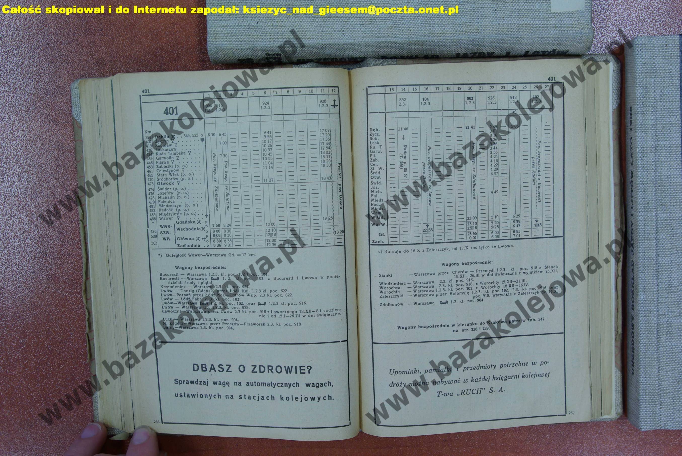 Rozkład Polska, zima 1938/1939, Str. 266-267, Tab. 401