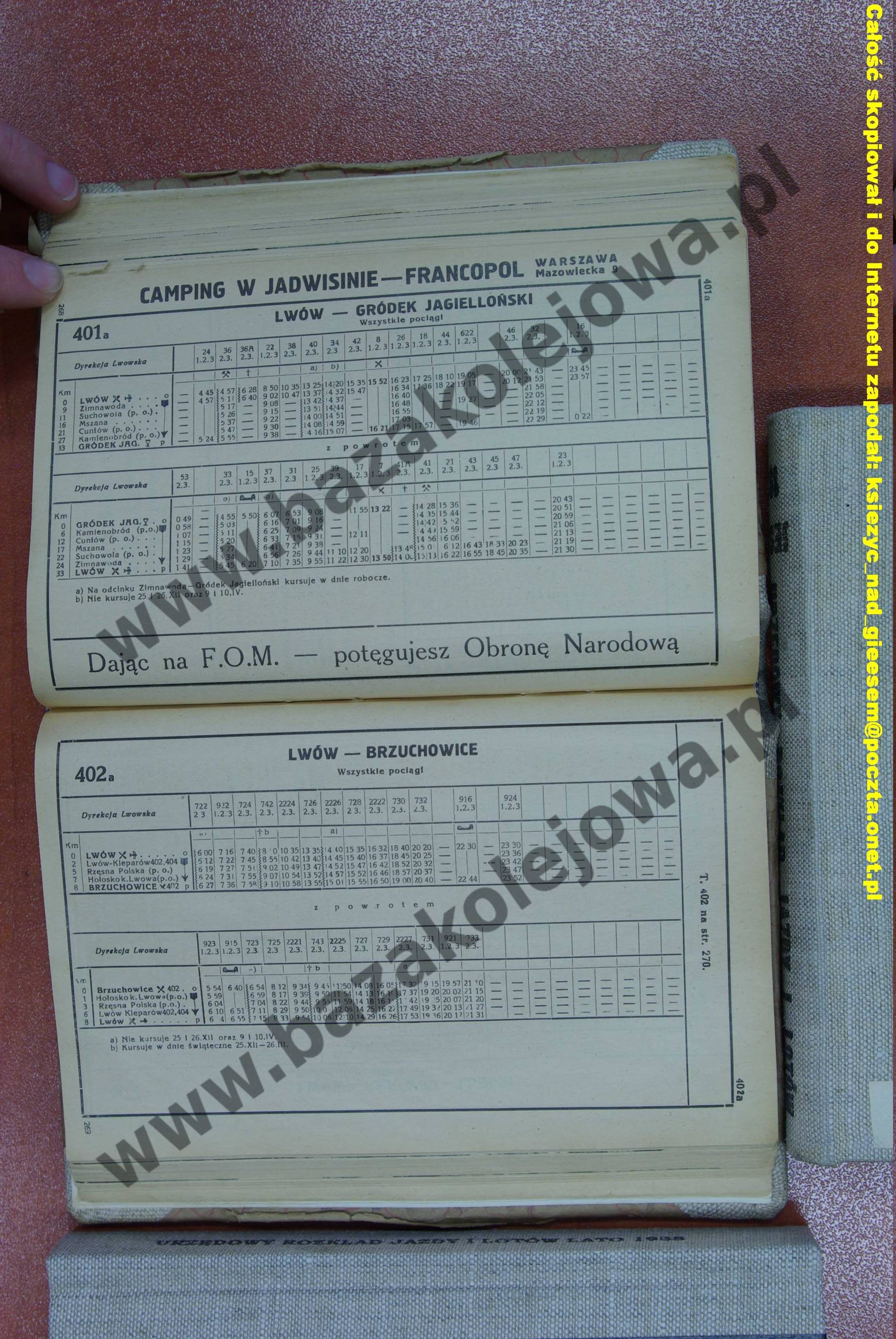 Rozkład Polska, zima 1938/1939, Str. 268-269, Tab. 401a, 402a