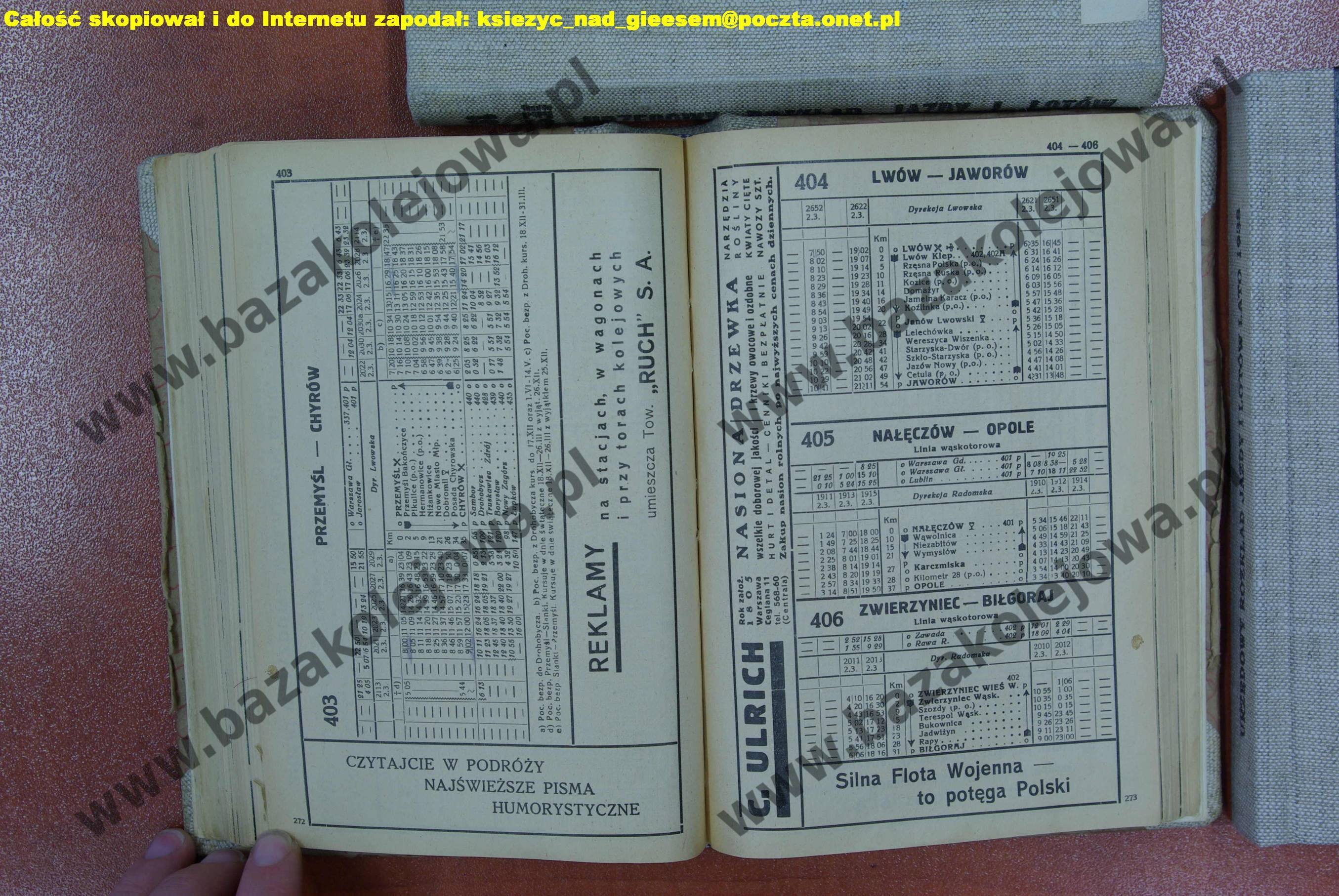 Rozkład Polska, zima 1938/1939, Str. 272-273, Tab. 403, 404, 405, 406